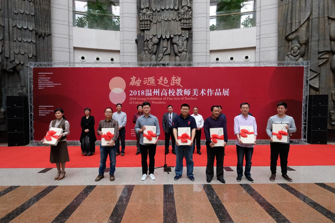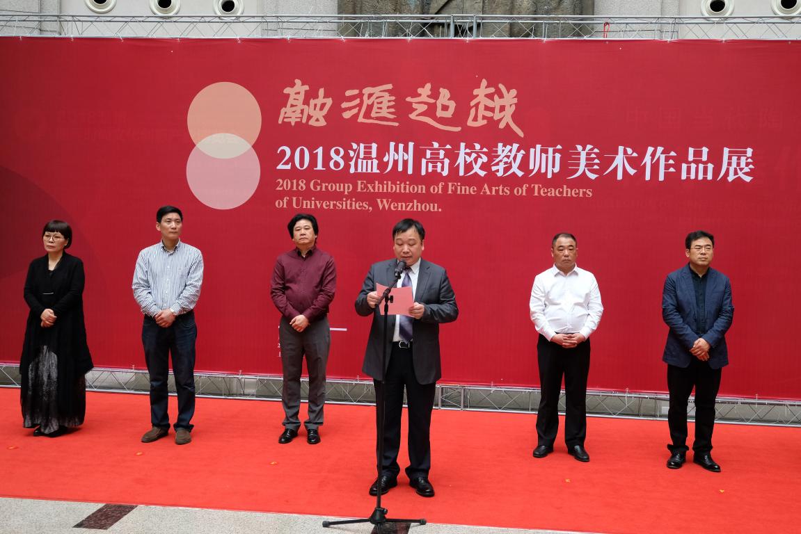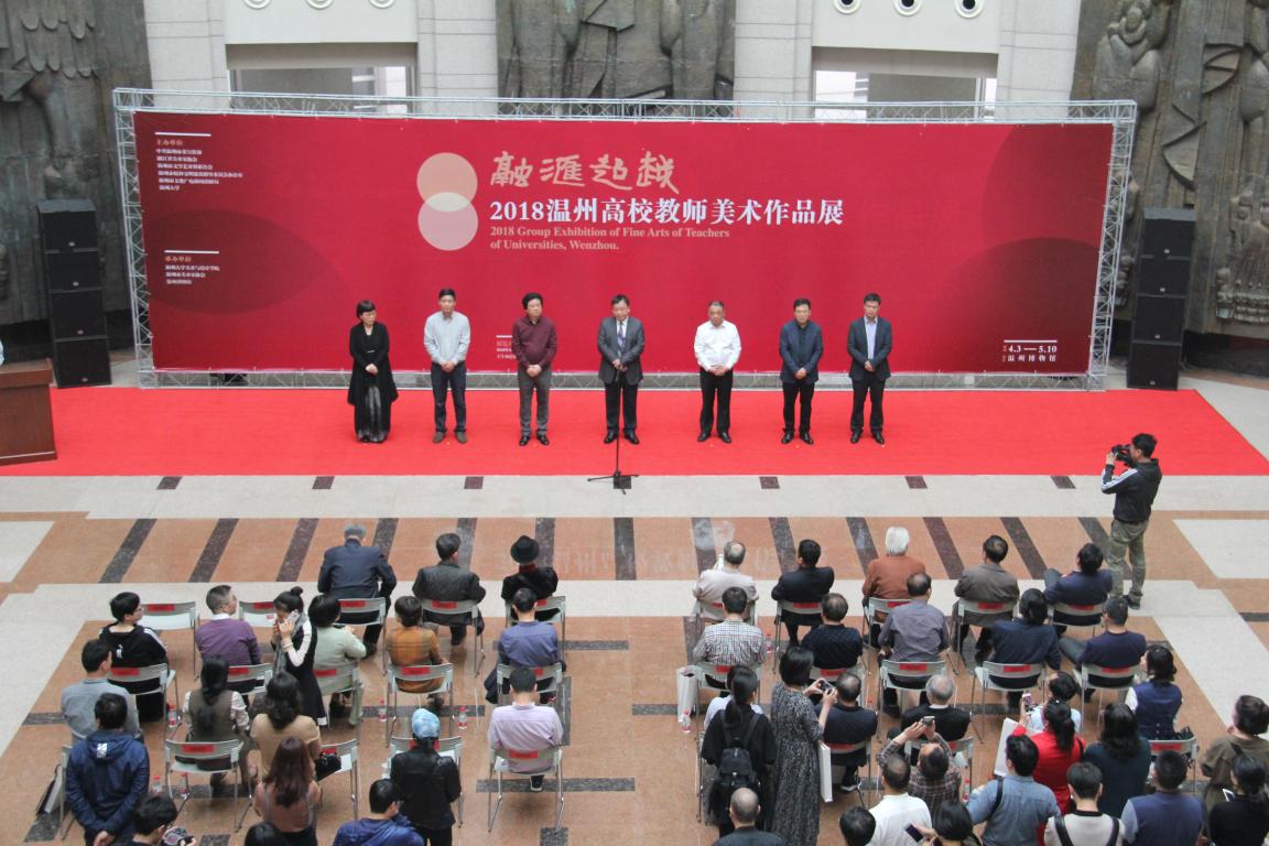 4月3日上午,“融汇超越”——2018温州高校教师美术作品展在温州市博物馆隆重开幕。出席开幕式的领导嘉宾有:万象城awc官网登录入口党委副书记赵敏,中共温州市委宣传部副部长魏平生,浙江省文联副主席、温州市文联主席邹跃飞,温州市文联副主席、万象城awc官网登录入口院长李运河,温州市文明办副主任余庆,温州市文广新局副局长李方喜,浙江省美术家协会副主席、温州市美术家协会主席蔡瑞蓉,特邀嘉宾还有原校党委书记陈艾华,市教育局高教处处长黄万统,另有叶玉昶、沈尧伟、钟式震、马亦钊、张如元、袁纲平、金松、陈钦权等老教授,美术家协会戴宏海、张成毕、陈旭海、李崇高等同仁,书法家协会汪廷汉、陈出新、陈胜武等同仁,书画院郑方伟、陈默、张真恺、林翼如等同仁,此外,学校老干部工作部部长陈慧、成人(继续)教育学院院长胡记芳等学校部门(学院)领导,万象城awc官网登录入口党总支书记张丽萍,副院长谢子静、张晓剑,副书记杨振海,学院师生代表200余人参加了开幕式。群贤毕至,少长咸集 。
