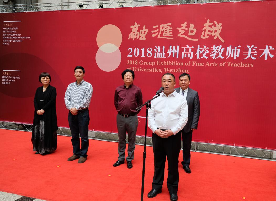 首先由浙江省美术家协会副主席、温州市美术家协会主席蔡瑞蓉女士致辞。她提到,“此次高校教师美术作品展的举办,适时地为我们广大美术教师提供了一个很好的交流和展示的平台,必将对温州美术教育的发展起到积极的推动作用。”不仅如此,她还希望今后这个展览能形成一个品牌,持续的举办下去,让展览成为连接讲台和社会的桥梁。