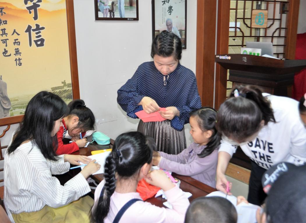 今天的梅泉有一些不同,这次课程由梅泉社区图书馆的老师为小朋友们授课。在课前展示环节,首先给大家介绍了不同的变色龙以及它们的生长环境,讲得台下的小朋友们听得津津有味,举手发言的十分踊跃。之后老师用一个简单生动的小故事引入今天的正题——折信封,小朋友们可以在信封上画出自己喜欢的东西,而在里面的信纸中,可以写下对对父母的感恩、老师的感谢,遇到不会写的字,志愿者们便会手把手一笔一划地帮助小朋友们完成,现场的活动气氛十分温馨。第二项活动是折纸小游戏,这个活动不限于折什么,于是志愿者们个个拿出了“十八般武艺”,有折小蝴蝶的,有折青蛙的,也有折爱心的,作品数不胜数。在最后的评奖环节,每位小朋友都拿到了小礼物,单纯的笑容在他们脸上灿烂地绽开。
