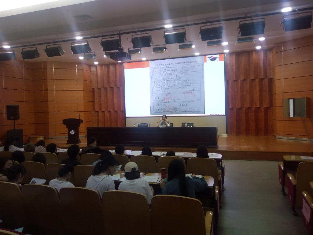 彭小媚老师围绕毕业、就业流程以及流程中相关文件的规范化填写展开,具体包括就业政策说明、教学教务、就业招聘、重要事项。其中,就业招聘包含校内招聘会的信息和注意事项:投递简历、就业协议、劳动合同、就业工作证明;而重要事项根据以历年历届毕业生遇到的问题,为方便毕业生顺利就业、毕业,着重强调毕业生办理毕业手续的整个流程,其中包括《高等学校毕业生登记表》《万象城awc官网登录入口学生档案袋》《报到证》《浙江省高校毕业生就业接收函》以及各个毕业班毕业留念的时间安排等工作。接着教学科邹青老师讲解了毕业生图像采集的相关流程和注意事项。最后叶筱卉老师强调就业的意义,同时勉励同学们要学会在学习中合理安排时间,明确自己的短板,努力弥补不足之处。