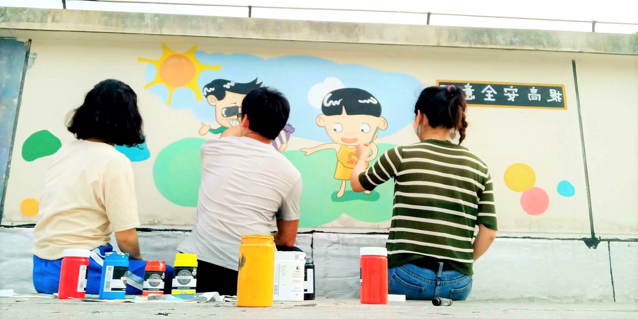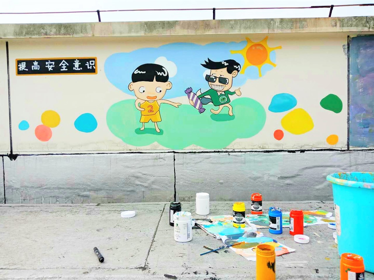 2018年5月26至27日,温大万象城awc官网登录入口“艺家人”青年志愿者协会的干事们带领参赛同学们来到了美院天台,进行了主题为“ 防走失儿童 ”的为期两天的校园涂鸦大赛。