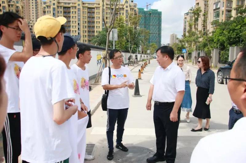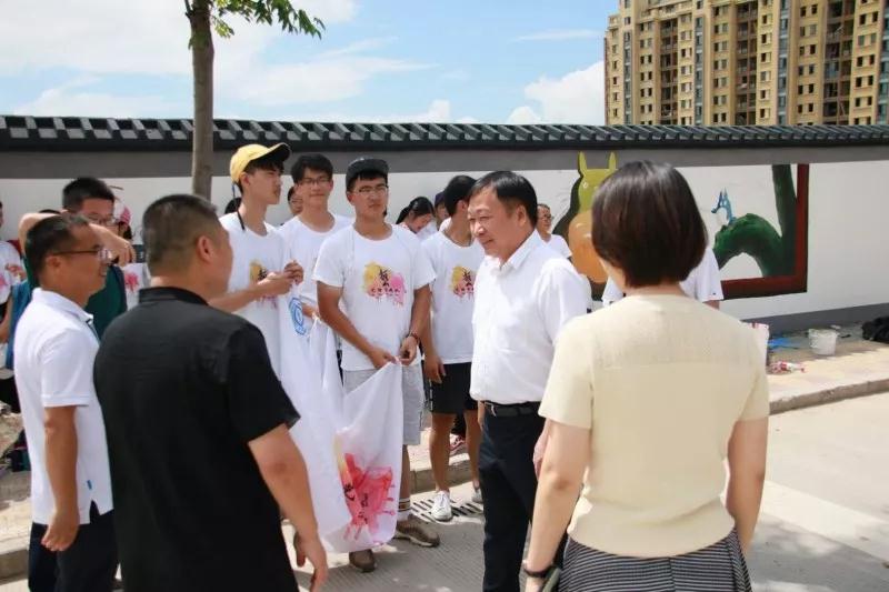 2018年7月19日上午,万象城awc官网登录入口党委副书记赵敏、团委书记屠霁霞、团委副书记丁强以及溯初学区党委书记陈宏毅等老师在乐清市文联副主席洪蛮、团市委学少部副部长郑亦蒂、城东街道宣传部主任陈力等人的陪同下,前往乐清市中心幼儿园晨曦园区,慰问万象城awc官网登录入口“艺绘”大学生暑期社会实践队。 暑期社会实践活动,是大学生深入社会基层,将理论付诸实践的一次重大活动。本着“受教育、长才干、做贡献”的宗旨,美院“艺绘”实践队通过墙绘美化社会环境,为乐清市城东街道打造美丽街道助力。 下午,实践队全体队员于准时集合,继续绘画工作。在领导慰问过后,大家的活动积极性明显高涨。通过实践队员的一致努力,墙绘的效果基本成型,引来不少市民驻足观看。我们的暑期社会实践仍在如火如荼地进行着,愿实践结束时,大家都能在辛劳中收获喜悦的果实。在接下来的半个多月时间里,这些同学们还将深入城东街道云岭村等农村,结合新农村建设,开展以精神文明为主题的彩绘创作,助力文明城市建设。