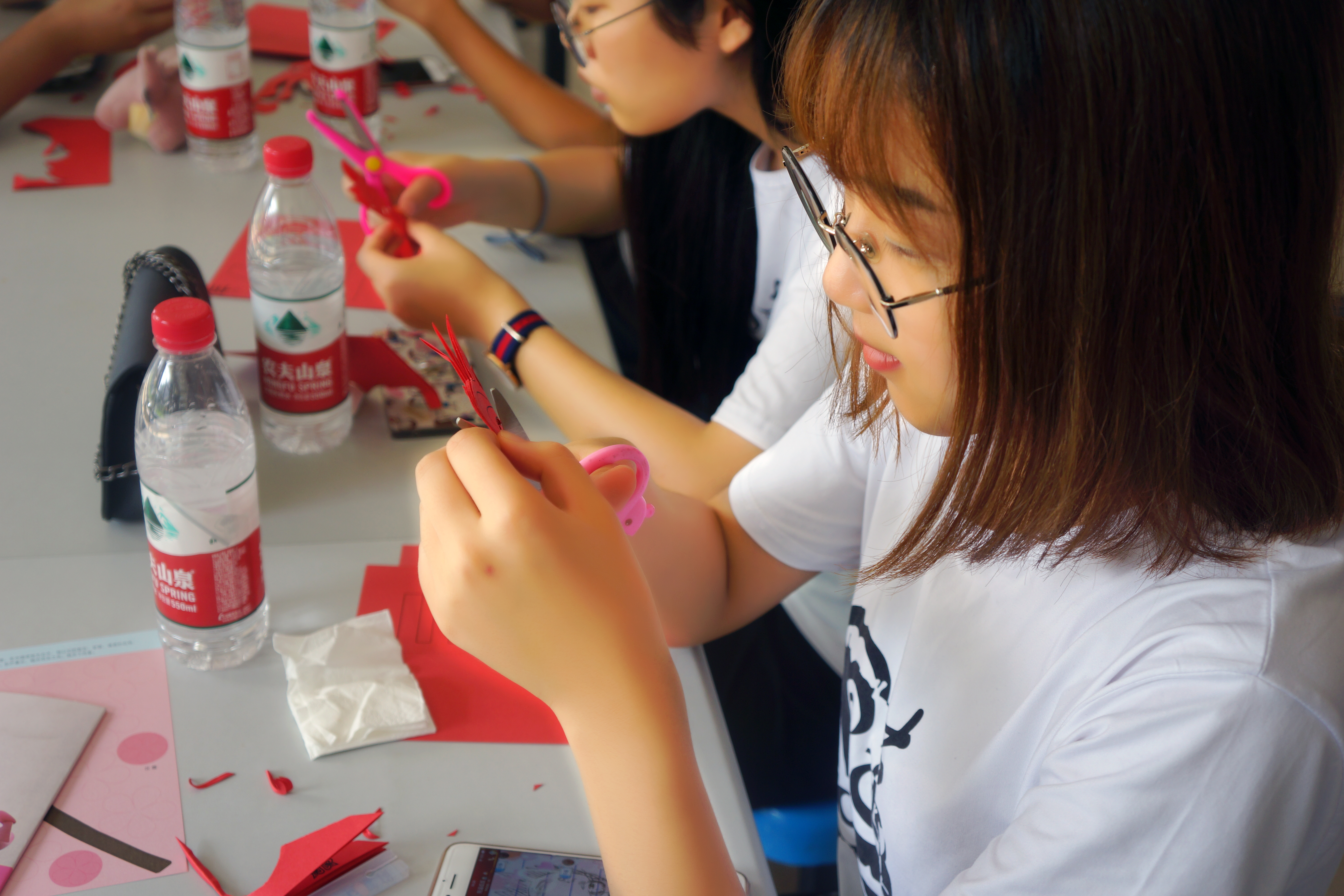 2018年7月27日,万象城awc官网登录入口“艺韵晚霞”暑期实践队前往万象城awc官网登录入口超豪学区食堂一楼,进行了以“艺韵之剪纸艺术”为主题的实践活动。 剪纸,又叫刻纸,是中国汉族最古老的民间艺术之一,剪纸是一种镂空艺术,其在视觉上给人以透空的感觉和艺术享受。剪纸在中国农村是历史悠久、流传很广的一种民间艺术形式。我们的文化在现代化,但是曾经滋养过整个民族辉煌历史的传统文化却以我们无法想象的速度流失着。一把剪刀,几张红纸贯穿了队员们的一下午的时光。由于是初学者,队员们的好奇心和求知欲是事前没有想到的,同时又发现这是一门考验细心与耐心的艺术。天气让人变得焦躁,而剪纸又让人变得安静。队员们并不像往常那样与彼此交谈,而是全部都全身心的投入于剪纸当中,电风扇呼呼的声音穿过耳膜,静的很享受。队员们有剪立体的花朵,有剪字体的,有的剪动物……种类繁多,但都是耀眼的红色。安静的下午并没有失去趣味,就这样,在活动结束之后,打扫了各自制造的垃圾,就等待把剪纸送给老人了! 一个民族的光荣,只能来自这个民族对传统文化的传承,更来自一种与时俱进的勇气。在活动中,加强了队员们对剪纸艺术的欣赏和创作,同时在剪纸的欣赏和创作中可以丰富队员们的知识,开阔了眼界。剪纸活动使队员们对中国民间美术有了初步的认识和了解,对中国传统文化中的象征手法和以物寓意的方法有了初步的感受。