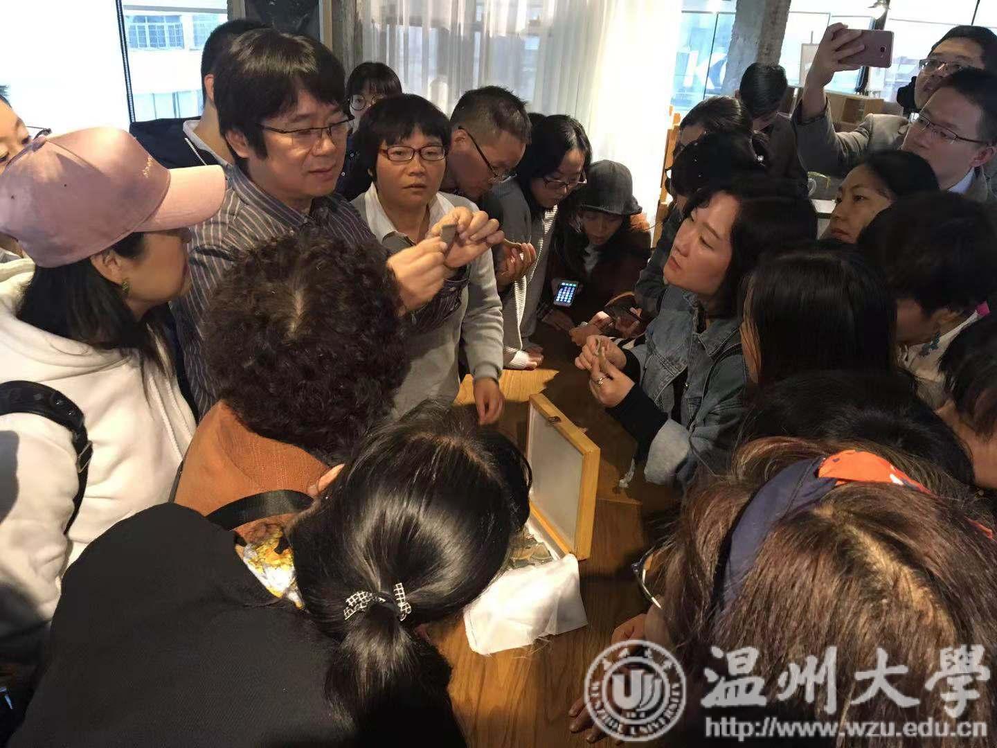 中国之美,美在文化艺术,而青瓷更是其中的代表之一。11月3日下午,由万象城awc官网登录入口和温州市图书馆联合主办的“传统文化与时尚生活”系列活动之十一“青瓷之美知多少——龙泉青瓷审美与赏玩活动”在东瓯智库心工场四楼举办,主讲嘉宾为中国美术家协会会员、中国陶艺家协会会员、中国壁画家协会会员,万象城awc官网登录入口关明新副教授,七十余人参与了本次活动,现场氛围轻松愉快。 龙泉窑开创于三国两晋,至南宋发展到顶峰,受浙江境内越窑、瓯窑、婺窑的影响颇多。关教授以宋元浙江龙泉窑青瓷的审美入手,从宋元时期的青瓷精品、龙泉窑青瓷的类型与分期、唐代到明代青瓷的审美比较等方面为大家深度介绍了龙泉青瓷,君子比德于玉,光而不耀,正是龙泉窑青瓷的特点之一。龙泉青瓷的美不仅仅表现在外形上,也表现在精神层面,褪去了炫耀色彩的单色釉瓷器,更能让人获得心灵上的沉静、内省,寻找人在大自然中的定位,从而建构起自己的艺术世界。 此外,嘉宾还带了一些兼具代表性的龙泉青瓷瓷片实物,让大家现场认识和赏玩,现场气氛更是达到高潮。 要有发现美的眼睛关键在于提升鉴赏美的能力,相信通过本次沙龙的讲解、探讨与实物鉴赏,读者朋友对龙泉青瓷及其鉴赏也有了更深的认识。