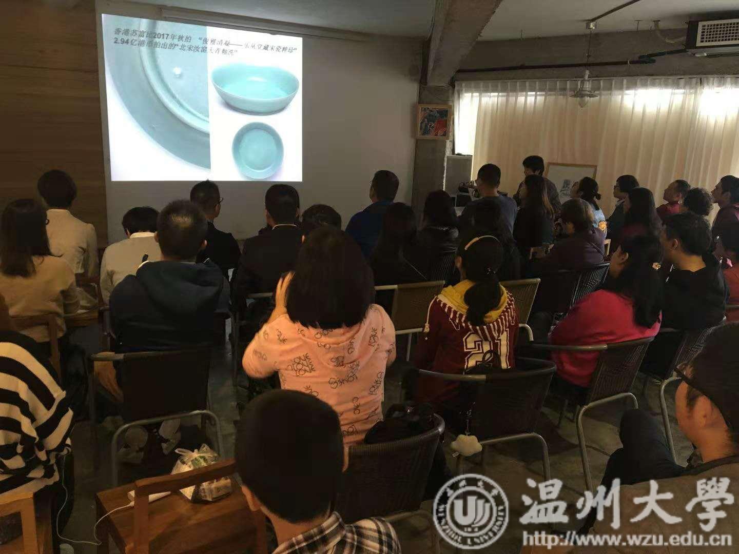 中国之美,美在文化艺术,而青瓷更是其中的代表之一。11月3日下午,由万象城awc官网登录入口和温州市图书馆联合主办的“传统文化与时尚生活”系列活动之十一“青瓷之美知多少——龙泉青瓷审美与赏玩活动”在东瓯智库心工场四楼举办,主讲嘉宾为中国美术家协会会员、中国陶艺家协会会员、中国壁画家协会会员,万象城awc官网登录入口关明新副教授,七十余人参与了本次活动,现场氛围轻松愉快。