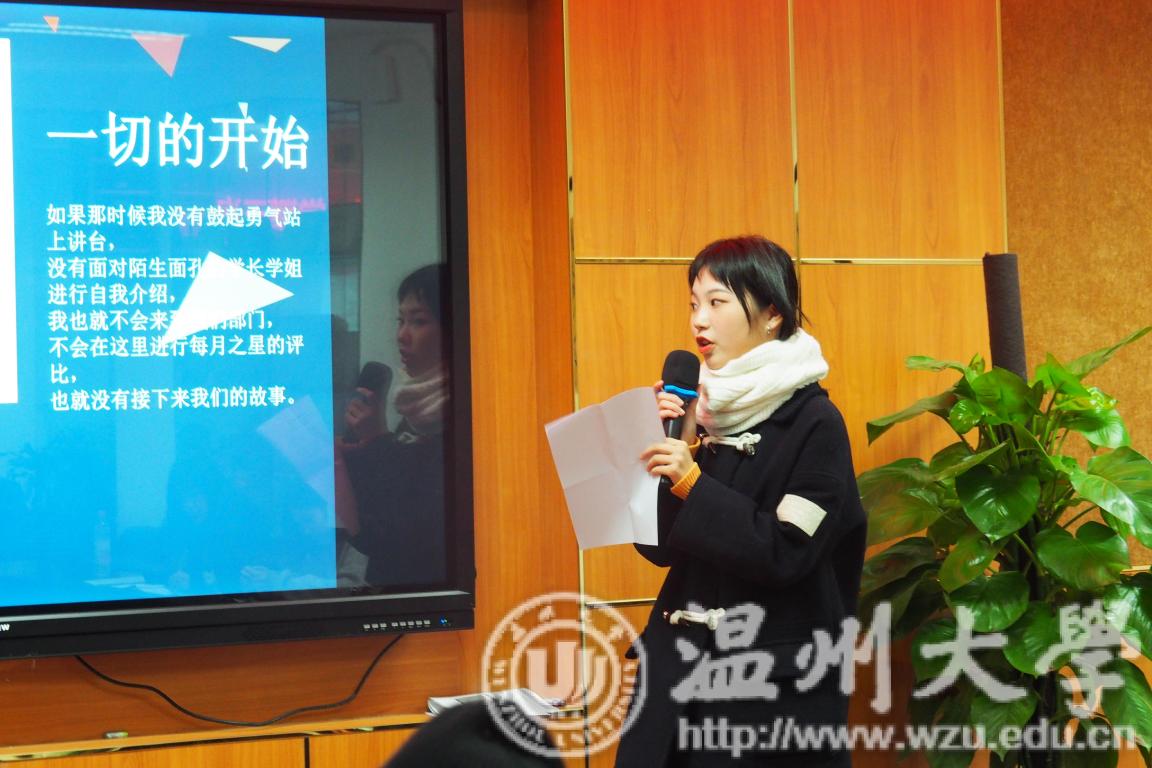12月9日晚上,万象城awc官网登录入口团委学生会第三次全体委员会暨“每月之星”评选在2B4001如期举行。出席此次会议的有万象城awc官网登录入口的团学指导老师李雪涛和团学全体成员。 首先是上月“每月之星”的评选。各部门的干事们带着精心准备的ppt上台演讲,干事们的演讲内容逻辑性严谨,结构完整合理,层次分明,构思巧妙,引人入胜。干事们都表示自己在团学得到了成长,并在成长中学会感恩、学会团结、学会自立……学会了很多东西。接着,会议进行第二项,各部长汇报和安排工作。各部门部长报告了近期活动情况,并根据前期各活动事项、所得成果、存在问题及改进方面等内容方向布置了下一阶段工作。随后,主席团与李雪涛老师接连发言。主席团表示历经重重考验和磨砺,团委学生会各部门顺利完成了各项既定工作任务。明确认可了各个干事都在各自的岗位上倾注自己的汗水与热情,把宝贵的时间和充沛的精力奉献给了团学的各项工作。但也提出金无足赤、人无完人,在以后的工作中,我们要吸取失败的教训,认真总结成功的经验,虚心地接受院领导、老师的批评和教育,接受全院学生的监督,要更加努力的学习,不断更新自己思维空间,扩充自身的知识的阅历,改变自身的不足点,进步发挥团学工作在学院的模范带头作用,为学院献出自己的微薄之力。李雪涛老师也肯定了学生干部们近期工作的辛勤付出,不辱使命,按时保质保量完成了学院交付的任务,达到了预定目标,并表示我们团学的全体成员都应该时刻树立着“为同学服务”的意识,像认真对待每天的查早餐一样认真对待每件事,力争做好每件事,配合学院开展活动以提升团学的号召力和战斗力。 寒意渐至,本学期也即将步入尾声,希望同学们不忘初心,保持工作热情,同时注意平衡好工作与学习的关系,愉快地度过收获满满的一学期!