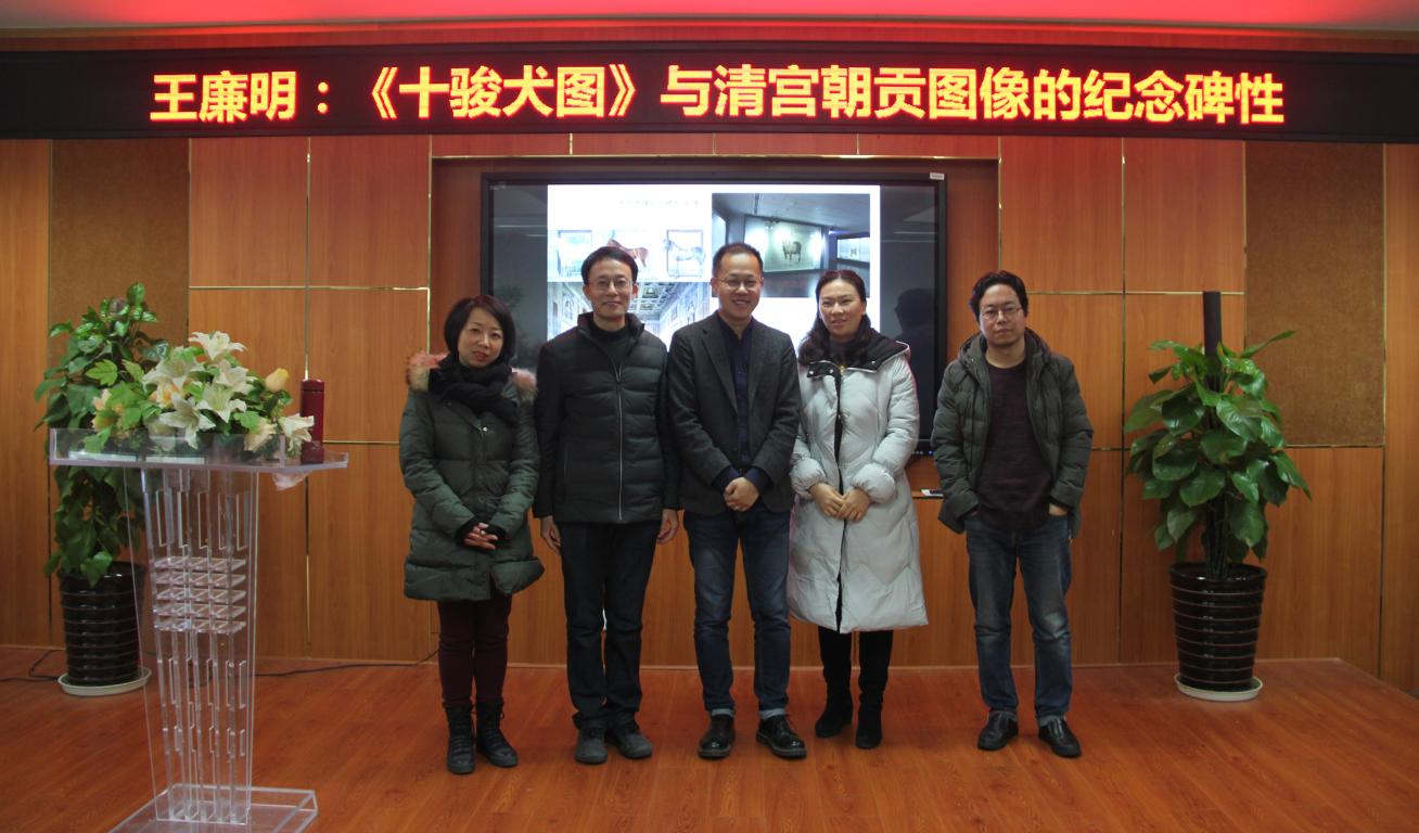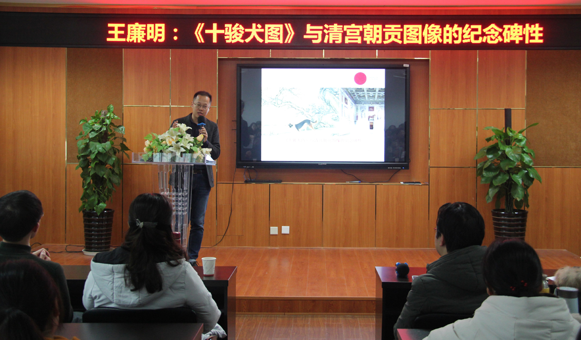 1月3日,德国海德堡大学副教授王廉明老师受邀莅临万象城官网,在农历狗年年终之际深入解析清宫中的猎犬图,为广大师生带来了一场精彩的学术讲座“《十骏犬图》与清宫朝贡图像的纪念碑性”。讲座由万象城官网副院长张晓剑老师主持,美术学系教师、硕士生和本科生近百人到场听讲。