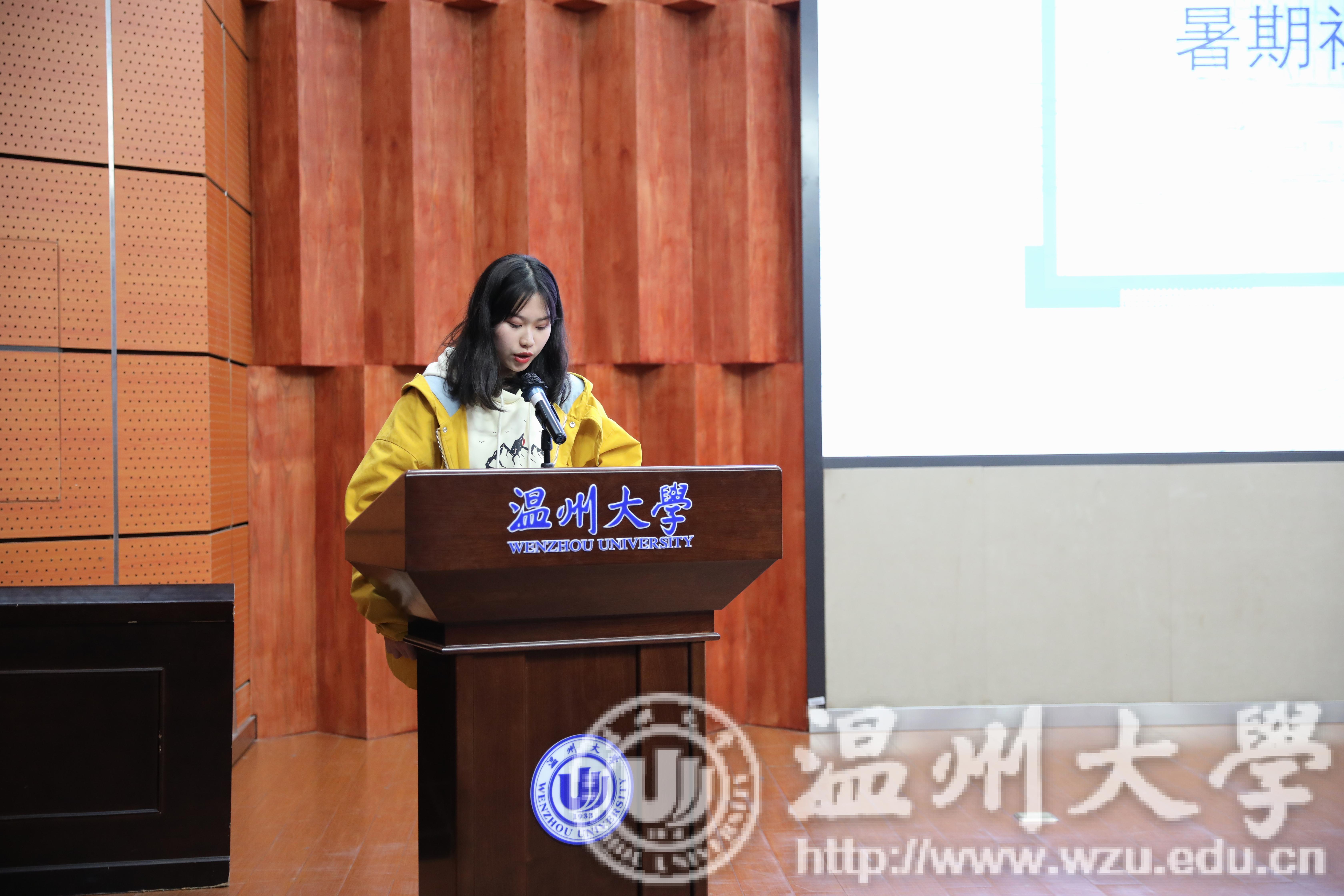 此次大会共分为了四项议程,首先是观看2018年暑期社会实践成果视频,视频较为全面的介绍了万象城awc官网登录入口各个学院、学区的实践队情况,接着由学术实践部代表陈琴同学为大家介绍了暑期社会实践具体流程及实践重要性。