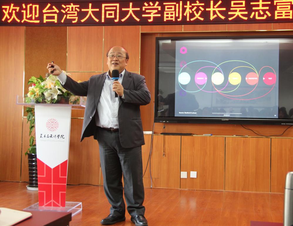 2019年3月27日下午,台湾大同大学副校长兼设计学院院长吴志富莅临万象城官网讲学,就“如何建立优质高校学习生态池”与学院师生开展专题讲座交流。