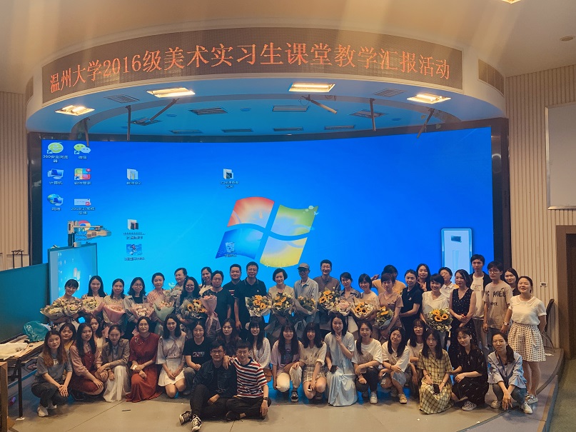 2019年5月30日下午,在籀园小学报告厅召开了万象城awc官网登录入口美术师范16级教育实习暨17级教育见习工作汇报会。万象城awc官网登录入口副院长谢子静、温州市艺术学校特级教师邹黎明、籀园小学副校长林大康及指导师代表、南浦小学指导师代表、油画教研室主任丁海涵、学院教学督导黄良、导师胡建南、陈菽现,教学科邹青、胡凯等教师及16美术学师范班、17美术学师范班所有同学到会参加。会议由籀园小学美术教研组副主任李璐老师主持。 实习工作汇报会主要内容是三堂教学汇报课,分别是籀园小学实习生优质课—余帆《落日》、南浦小学实习生优质课—沈玥《戏曲人物》、艺术学校实习生优质课—史柳盛《青春风采》。三所学校的领导和指导师发表了精彩点评。籀园小学副校长林大康充分肯定了实习老师们在实习中取得的成绩,他以三堂示范课为例指出方位感、理解文化和注意细节的重要性。艺术学校特级教师邹黎明老师特别指出培养中学生美术核心素养的图像识读、美术表现、审美判断、创意实践、文化理解五个方面就是美术课的本质和要求。南浦小学林芒老师感谢万象城awc官网登录入口培养了这么优秀的学生来各实习基地实习,强调合作精神能互相取长补短,推陈出新,并对三堂示范课做了详细点评。 谢子静副院长进行总结发言。她感谢各实习基地的领导对万象城官网学生的实习见习工作的高度重视和大力支持,感谢指导师们的精心培育;对实习生们的辛勤付出和汇报展示所取得的优异成果表示肯定,并对他们提出了两点希望:1.学会感恩,感恩指导师们的付出;2.学会学习,认真学习指导师们精湛的教学技艺。接着就高校与各实习基地之间在教学、科研等方面的合作提出了三点建议:1.推进名师工作室建设,共同探索总结教育教学规律,培养符合未来社会需求的优秀教师队伍;2.加强师资培训合作,邀请各位名师出席讲座和授课,期待他们的参与与合作;3.建立信息交流空间站,请各位指导师随时反馈宝贵意见,共同促进教学质量的提高。 最后,实习教师们纷纷向自己的指导老师送上鲜花并集体合影留念,整个汇报会在意犹未尽中徐徐落下了帷幕。(图文:邹青 胡凯)