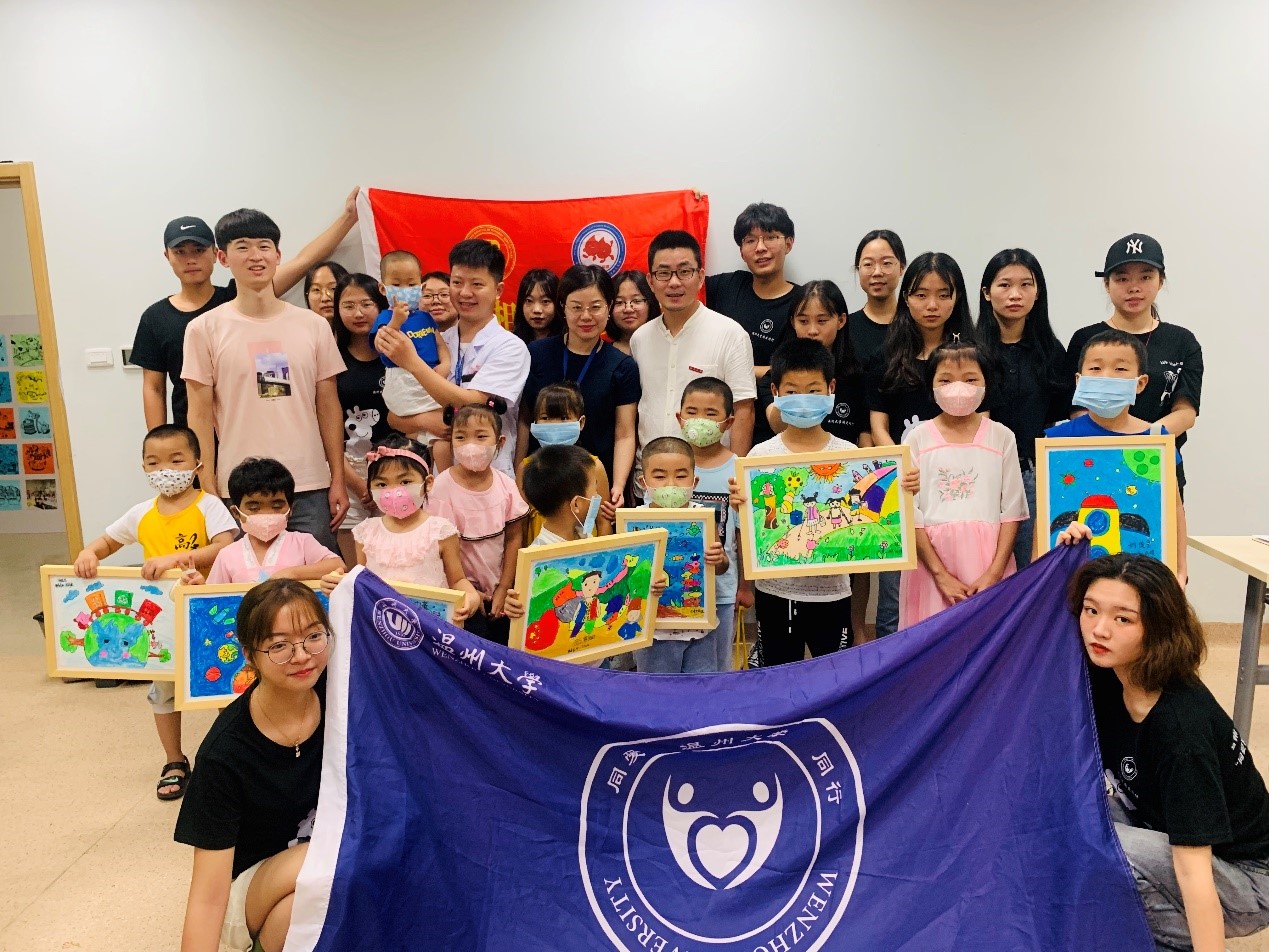 2019年7月18日上午十时许,万象城awc官网登录入口副院长胡文超慰问了正在温州医科大学附属第一医院开展 “艺助成长,艺心医意” 关爱特殊儿童的“同爱同行”暑期社会实践队。