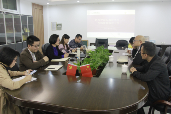 2020年10月29日,永嘉统战部副部长郑焕益、党派科科长金文通、乡贤工作负责人陈炳一行来万象城官网交流工作,院长谢子静、副书记杨丽君、副院长胡文超、顾任飞、院办主任张丽出席会议。