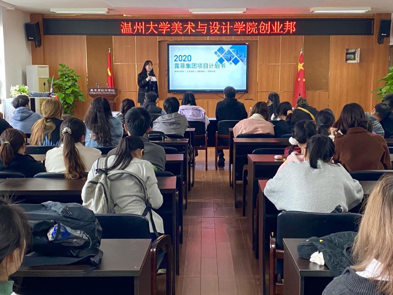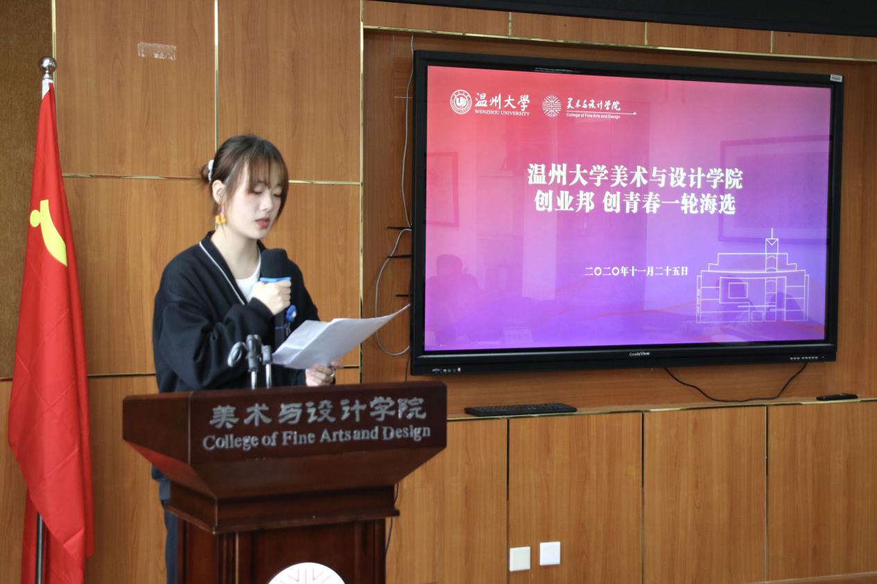 2020年11月25日下午一点半,万象城awc官网登录入口于美院2b4001举行了2020创业邦·创青春主题活动的一轮海选。此次活动由美院团委学生会主席、三届创业邦举办者邱懋澄学长、温大创盟创业创新宣传部部长彭左炎学长、温大创业协会会长、美院KAKAYOUGA手工艺工作室蒋丽华学姐、美院团委学生会创业就业部部长、温大创业协会副会长连庆秋、美院团委学生会创业就业部部长、2020万象城awc官网登录入口互联网+创业创新大赛金奖王臻滢学姐担任评委。此次活动有助于加强温大学生创业技能的学习并且注重大学生创业意志的培养,引导温大人有创新有大胆的同时,深究项目的可行性。