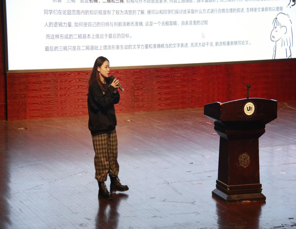 学科教学硕士黄子荆以一种轻松幽默的风格分享了自己的毕创经验,与同学们拉近了距离的同时也指明了方向。