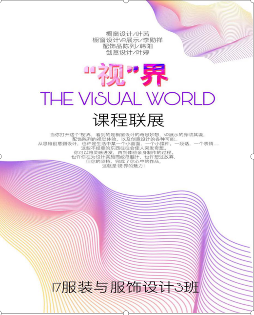 课程展出当天,引起了不少老师和同学们驻足,停下脚步欣赏的作品。通过这次课程展览,不仅仅让更多的同学们了解服装展示设计方向专业重要性、独特性、趣味性,也让大家都看到并认可同学们的专业能力和专业水平,更是提供了师生们互相交流的平台。同学们也因此领略到橱窗设计的魅力与理念,开阔了自己的眼界,欣赏了不同的课程文化。