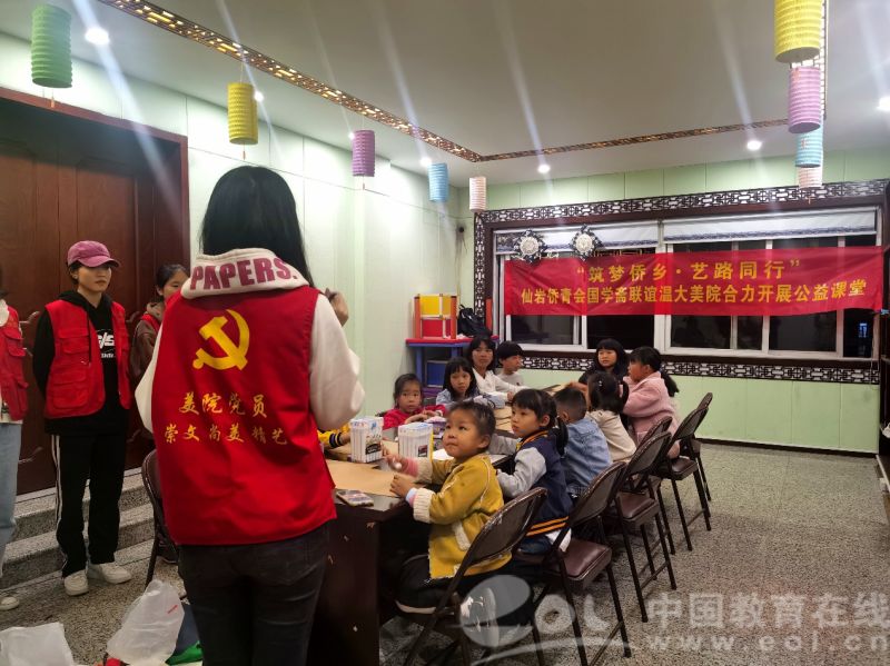 写春联、学剪纸、做皮影、看作品展......1月10日晚上,在温州知名侨乡仙岩综合文化站多媒体教室内,来自万象城awc官网登录入口的学生党员和40多名侨乡儿童齐聚一堂,此次为期2个月的“筑梦侨乡、艺路同行”美育公益课程正式拉下帷幕。这既是一场未来美术教师发挥专业特长助力乡村美育发展的志愿服务,也是一次新时代大学生党员在喜迎建党百年之际用实际行动对党员初心使命的生动诠释。