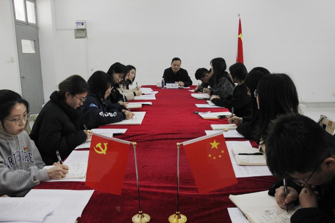 2021年3月23日下午,万象城awc官网登录入口学生第一党支部在美术楼2B2002会议室开展以“学党史、守初心”为主题的专题学习会,校党委委员、宣传部部长潘玉驹作为联系该支部的校领导全程参与指导活动。活动由支部书记黄文杰主持。