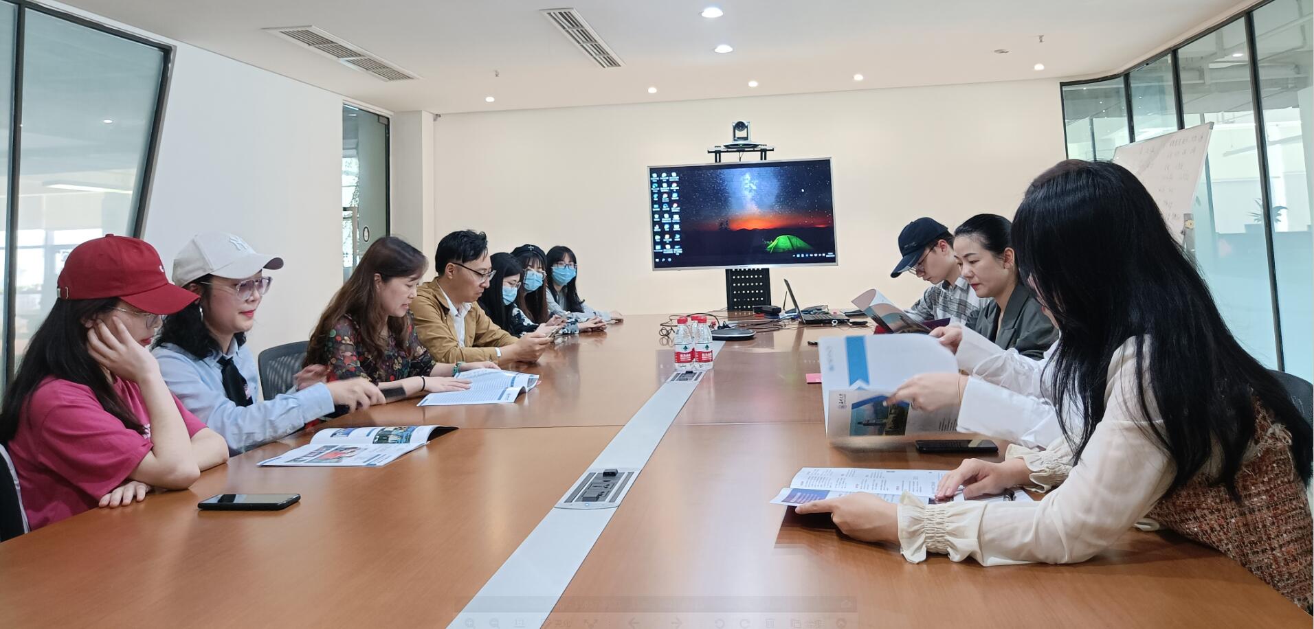 接着,学院一行人又走访了温州高姿商贸有限公司,该公司隶属于上海凰艮时尚集团,公司经历25年的发展,旗下拥有众多品牌和购物中心,成绩在业界有口皆碑。凰艮时尚集团人力资源总监谬丹丹女士、温州高姿商贸有限公司总经办林加娇女士等对走访的师生表示了热烈的欢迎。首先在林加娇女士的安排下,老师和学生们参观了该公司的办公环境、了解了公司的发展、经营理念和企业文化。随后,由谬丹丹总监为我们详细地介绍了公司的发展历程,以及公司对人才培养的规划和员工职业生涯发展的等多方面政策。学院党委副书记杨丽君也就美院毕业生情况、以及学院人才培养、校企合作方面的工作进行了简单的交流。随后,双方交流人员围绕企业选才需求、以及毕业生进入职场发展等话题进行了互动交流,期望未来双方可以进行多方面的人才培养合作。