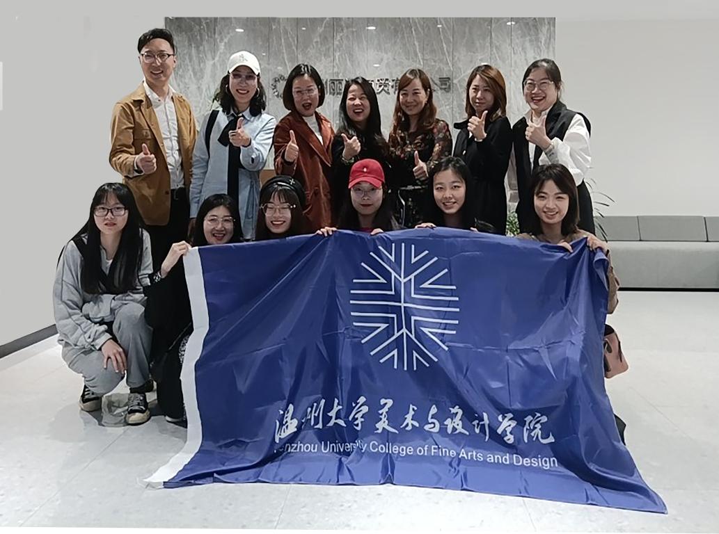 2021年4月23日,万象城awc官网登录入口党委副书记杨丽君、服装系叶茜副教授、学工办主任杨鹏、部分服装专业本硕学生,走进浙江飘蕾服饰有限公司、温州丽姿商贸有限公司交流。