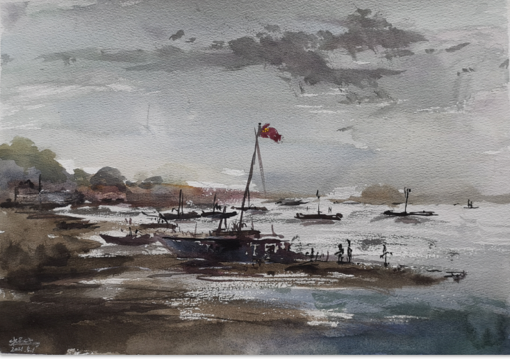 经过4周的辛勤努力,丁海涵老师带领20美师3班的同学们从临摹大师作品入手,体会大师高超作画技巧和色彩感受,了解水彩的特性以及水彩画的魅力。在丁海涵老师的带领与指导下,同学们展开了学校周边写生活动,通过描绘街景、水乡、大罗山以及写生静物来进一步了解水彩画的作画特征,完善自身水彩认知体系。