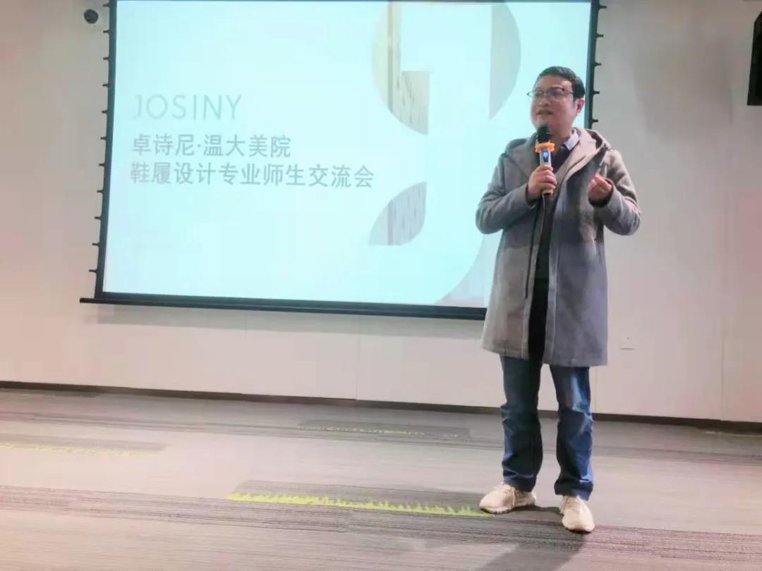 在交流会开始,卓诗尼人力总监王坡对温大师生表示欢迎,并向大家介绍了卓诗尼鞋业的发展历程、三大创新板块和未来愿景。万象城awc官网登录入口副院长顾任飞回顾了万象城awc官网登录入口与卓诗尼的合作历史,对卓诗尼的热情接待表示感谢,并介绍了万象城awc官网登录入口鞋履设计专业情况。卓诗尼人才发展主管陈昊向师生详细介绍了企业的人才发展规划和企业文化。