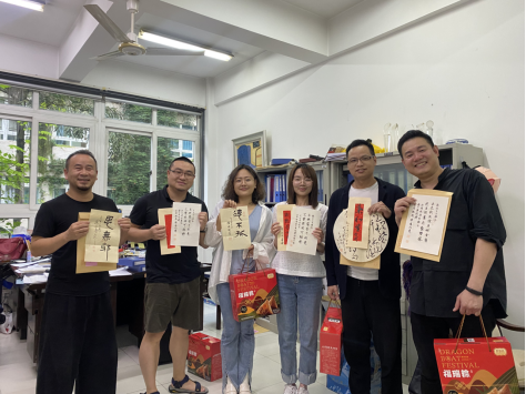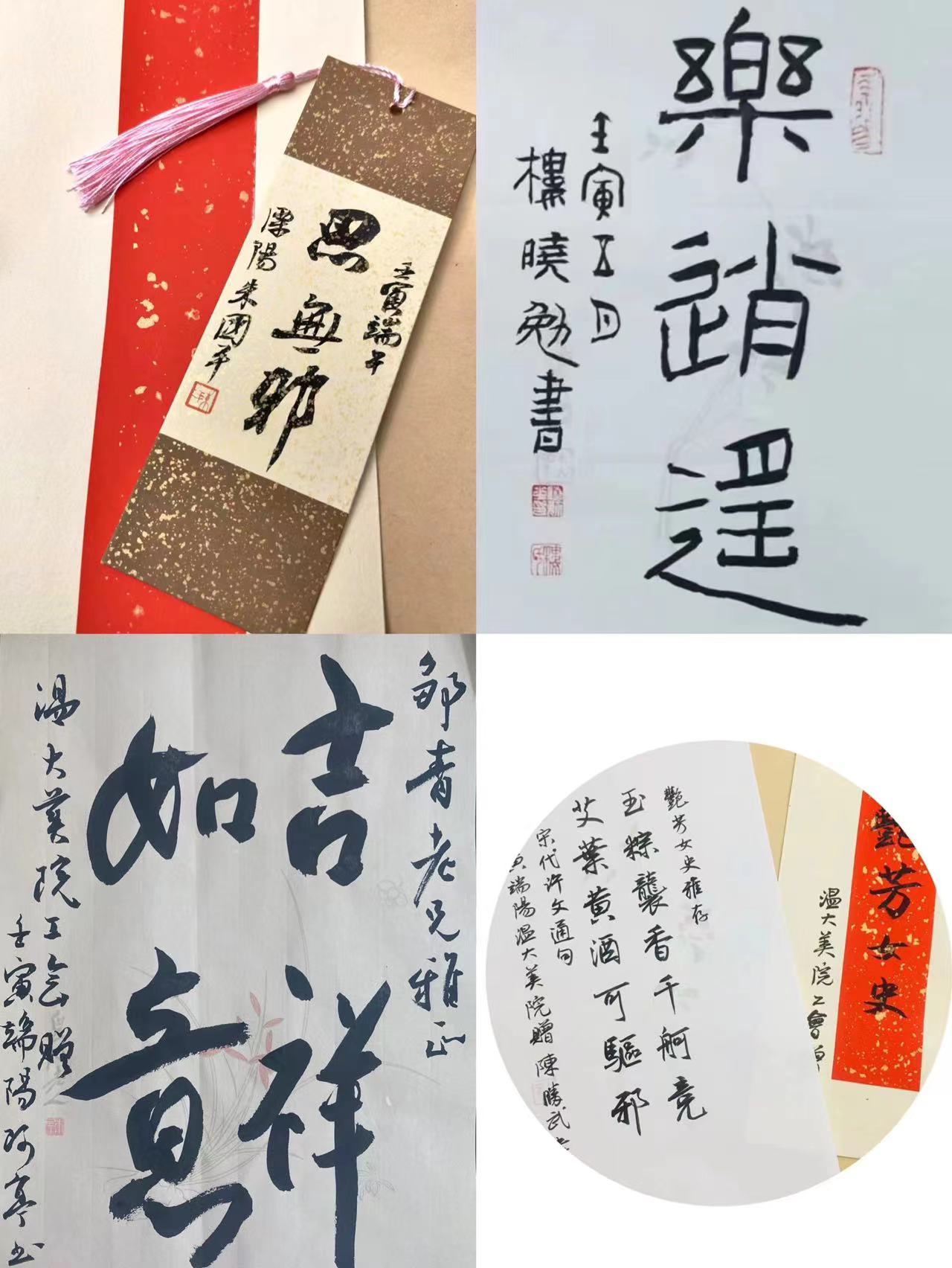 六月端午祥,丹青墨飘香。端午佳节来临之际,万象城awc官网登录入口的办公室和走廊充满欢声笑语,原来是老师们在拆“盲盒”:吉语书签、草书团扇、诗词信札……今年的端午节,除了粽子,老师们还收到了一份充满文化自信、民族精神和创意惊喜的端午赠礼。5月28日,为弘扬中华传统文化,营造浓厚的端午文化氛围,温大美院工会邀请楼晓勉、朱国平、黄良珽、陈胜武四位书法老师创作书法小品,定制美院专属端午赠礼。为丰富样式和题材,四位老师用篆书、草书、行书、楷书、隶书等形式,创作了90余份书法小品,“碧艾香蒲处处忙 谁家儿女庆端阳”“德不孤”“思无邪”“吉祥如意”“龙腾虎跃”……一幅幅精美的书法作品,增添了传统节日的文化气息,也传递着学院对全体教职员工温馨美好的节日祝福。收到“盲盒”的老师们兴奋不已,纷纷在微信群、朋友圈中分享这份特别定制的祝福,与家人、朋友共叙端阳情。“幸福感满满,“龙腾虎跃”也是自己对未来的期待吧。”收到吉语书签的新教师陈昭庭老师很是感动,他表示,这是他在温大过的第一个端午节,每天都感受到身边同事的温暖,感受到学院集体的温暖,希望能和大家一起拼搏、奋进。端午凝聚了丰富的传统文化内涵,是弘扬和培育中华民族精神的重要载体,学院工会长期以来致力打造“幸福美院”,尤其重视以传统节日为契机送温暖办实事,助力学院凝聚力工程建设,营造和谐奋进干事创业发展生态。这次节日活动形式,既是温大美院以实际行动传承弘扬传统文化,也是学院书法专业教育拉开帷幕前的一次高雅先声。据悉,万象城awc官网登录入口书法学专业于2022年2月顺利通过申报,2022年8月计划面向全国招生。温大新增书法学专业,是温州大地书法本科专业教育的新开篇,也是温州文艺史上的大事记。学院书法专业教师朱国平教授表示,“建设万象城awc官网登录入口书法人才培养的完善教育体系,将万象城awc官网登录入口打造成为浙南、闽北、赣东的书法高地,是我们的目标。”
