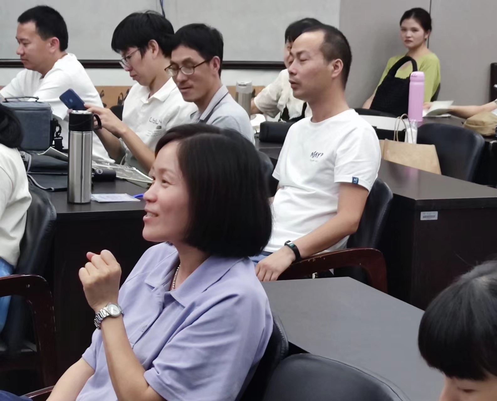 最后,周新波书记从日常生活的角度和教师学员讨论人生智慧,在生活中奋勇向前,把自己的生活小秘诀传授给大家,总结了三句话,“学会及时归位、尽量形成闭环、力求丰富多彩”。周新波书记以十分接地气的语言和文字表达出自己的生活态度,让教师学员们在喜悦的氛围中受益匪浅。同时祝愿各位教师学员在今后的生活和工作中,继续保持良好的心态,积极学习,努力工作,提升自己的同时也为社会的发展做出自己的贡献,也希望参加本次培训的教师学员都能够从中收获满满。