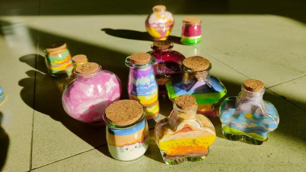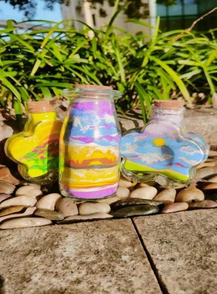 从一开始小心翼翼地将沙灌入瓶中,到逐渐熟练地运用各种颜色的沙塑造出心中所想的图案。有地描绘出了美丽的海边日落,金黄的余晖洒在波光粼粼的海面上;有的则塑造出了繁花似锦的春日花园,五彩斑斓的花朵争奇斗艳。