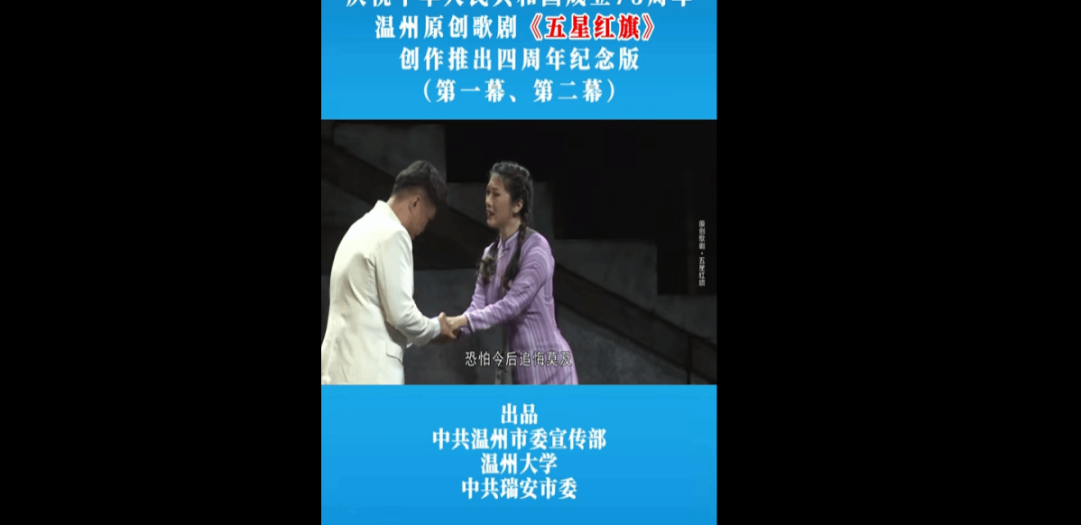 通过线下自行观看温州原创歌剧,各位学生干部们了解以五星红旗的诞生为主线,通过温州人、万象城awc官网登录入口校友曾联松设计国旗的四剧幕,反映浙江青年将个人情感抉择与家国命运紧密相连,颂扬勇于担当、矢志不渝的革命精神与爱国情怀。此歌剧将人物与故事置于波澜壮阔的近代中国革命历史背景,通过抗日战争、解放战争与新中国成立等史实铺陈,展现了中国共产党领导下的广大人民群众为新中国建立创造的不朽功勋,赋予了五星红旗鲜明的政治内涵、历史内涵与文化内涵。