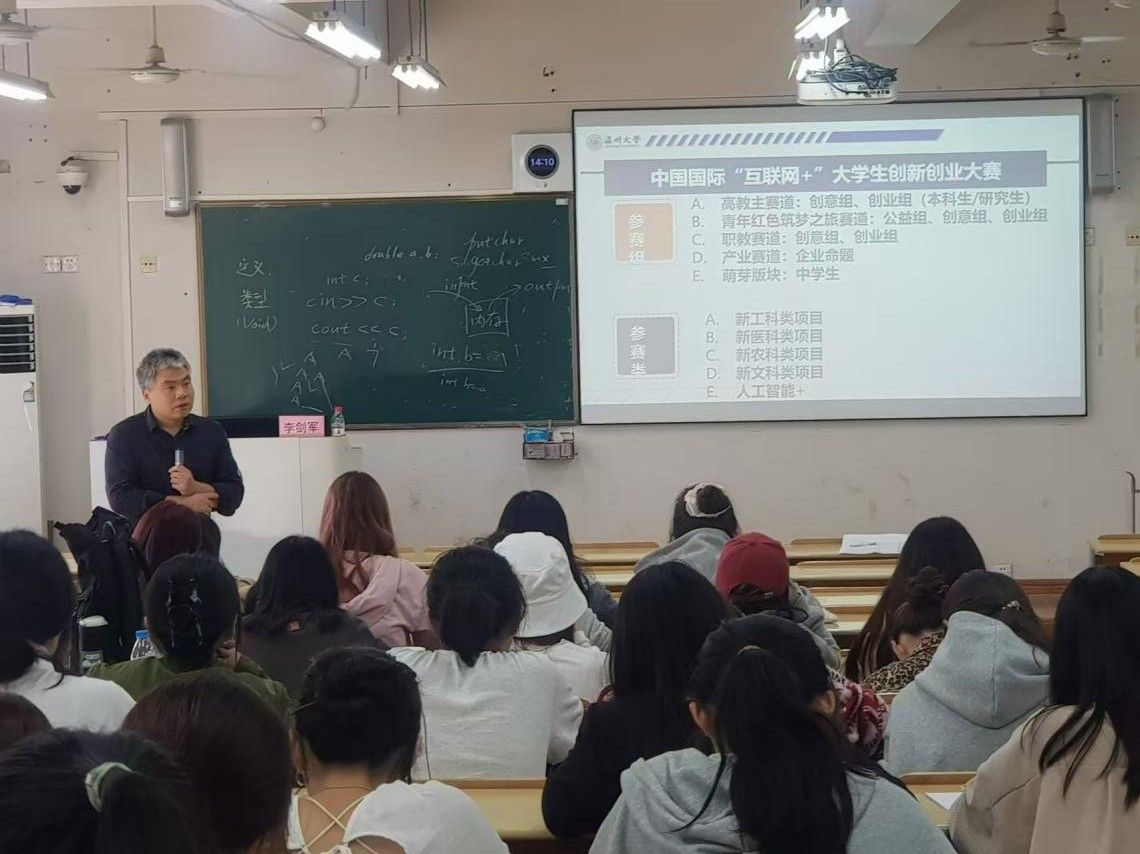11月2日下午在万象城awc官网登录入口苏步青学院B305教室,万象城awc官网登录入口创新创业学院教师李剑军带来了2024-2025学年万象城awc官网登录入口第三次团干培训——创业大赛的分享。