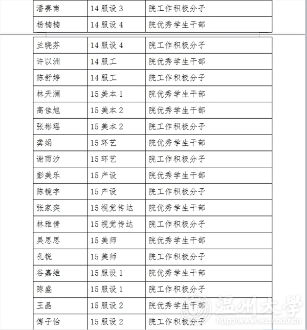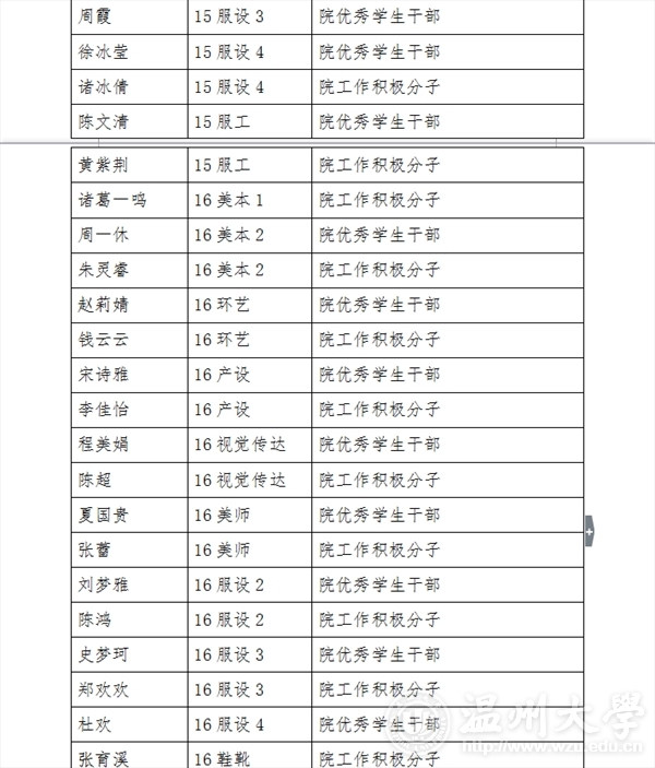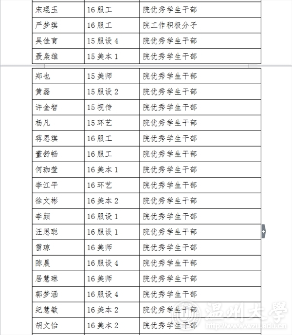 现将2016-2017学年第一学期万象城awc官网登录入口“优秀学生干部”“工作积极分子”名单公示如下,如对评选结果有异议,请于2月25日17:00前及时联系美术学院学生科。