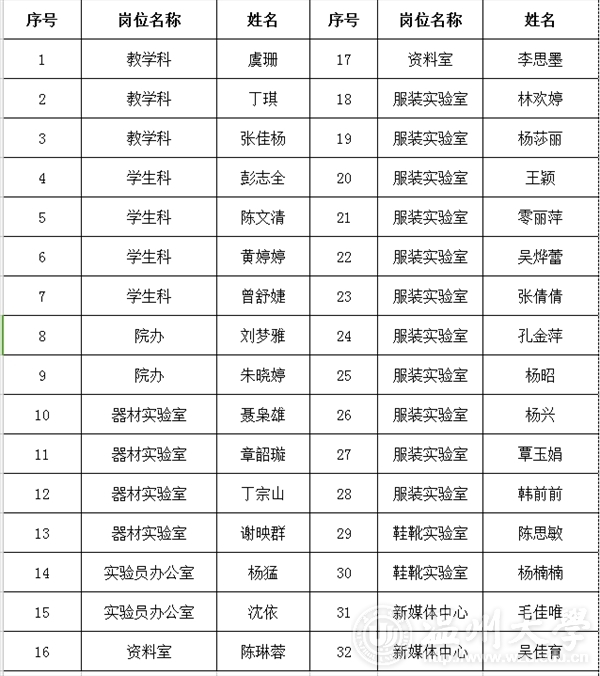 2016-2017学年第二学期万象城awc官网登录入口勤工助学岗位名单