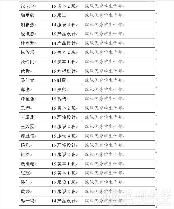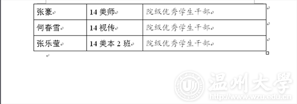 现将2015-2016学年第二学期万象城awc官网登录入口“优秀学生干部”“工作积极分子”名单公示如下,如对评选结果有异议,请及时联系美术学院学生科。