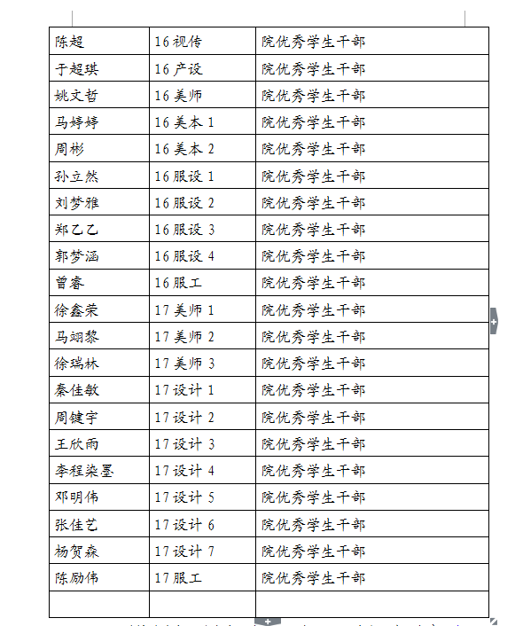 现将2017-2018学年第一学期万象城awc官网登录入口“优秀学生干部”“工作积极分子”名单公示如下,如对评选结果有异议,请于3月7日17:00前及时联系美术学院学生科。