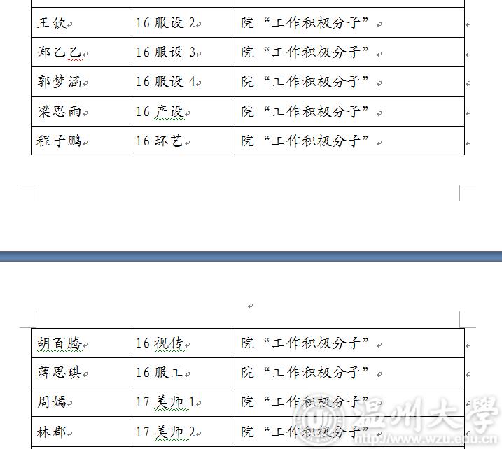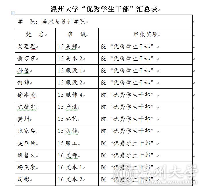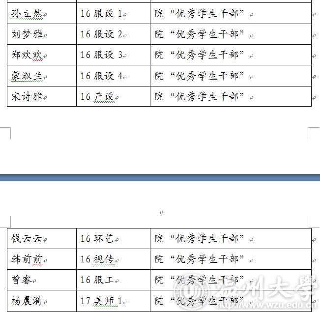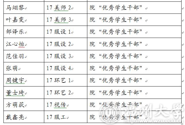 2017-2018学年第二学期万象城awc官网登录入口“优秀学生干部”“工作及积极分子”名单