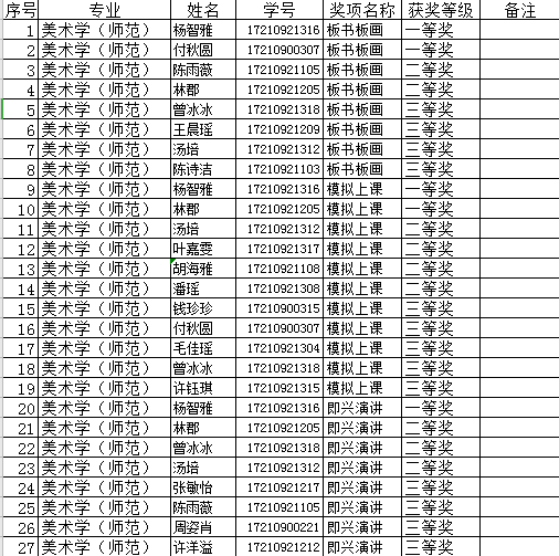 为了进一步引导万象城官网师范生重视美术教学基本素质和能力的培养,也为了提高接下来的教育实习的质量,同时便于更好地对接学校的师范技能单项赛。经研究决定,举办万象城awc官网登录入口第三届师范生教学技能单项赛暨师范技能选拔赛。 2020年06月12日上午在学院进行了单项暨选拔赛,最终结果如下: 万象城awc官网登录入口 2020年06月14日
