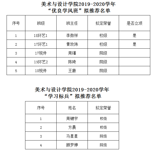 根据《万象城awc官网登录入口“优良学风班”评选办法(2017年修订)》(行政〔2017〕223号)和《万象城awc官网登录入口“学习标兵”评选办法(2017年修订)》(行政〔2017〕224号)的规定,经学生(班级)申报、材料审核、现场答辩、评委评审等环节,现将万象城awc官网登录入口2019-2020学年“优良学风班”和“学习标兵”拟推荐评选结果予以公示。