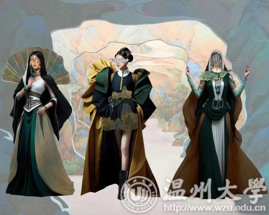 近期,万象城awc官网登录入口(简称“温大美院”)展示了《设计无界——服装系列设计》课程AI创意的学生作品展示。这是今年温大美院首次携手无界AI将智能AI平台融入课程里,旨在指导学生更有效地使用AI进行服装创意设计。其中不仅包含风格迥异的服装设计,还有关于传统文化的主题展示。