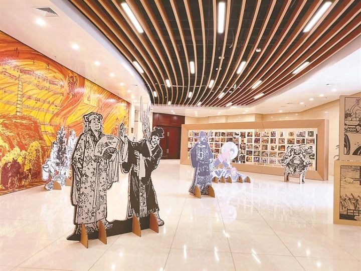 “时代印记·为人民而画”展览不仅是一个连环画展览,还是一个俭约的展览——展厅外“站立”的很多“纸片人”,是不同年龄段观众都非常熟悉的连环画形象;步入展厅,瓦楞纸做的“时空舱”,立刻带领观众走入“鲁艺—鲁美”的时空。
