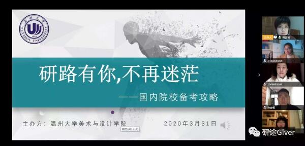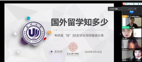 疫情不是暂停键,成长指导全在线。一个多月时间以来虽然“开学不返校”,但是245名本科毕业生的就业工作一直让万象城awc官网登录入口的老师们牵挂不已,尤其是对于学院立志考研和准备出国的学生,如何帮助他们顺利实现梦想?为了更好地指导学生学习规划和考研升学,近日,万象城awc官网登录入口在“云端”组建了一个实力不容小觑的导师团,聘请8位优秀校友担任“考研(留学)校友学长导师”,并且连续举办了2场“云”端传送考研(留学)真“经”的活动,参加学生近200人次。 “我最大的感受是如果准备出国留学,语言沟通能力是很重要的,这方面要付出较多的精力,另外就是要确定好自己的目标,选择哪个国家的哪所大学以及学什么专业,目标确定了以后才能走得更快更远!”目前正留学意大利罗马第一大学的陶夏欣学姐这么说。 “选择考研一定要走出自己的舒适圈,你可以去图书馆、去学校考研教室,尽可能不要呆在寝室里;如果你够自律,你可以一个人学习,如果你觉得自己不够自律,最好选择一个考研的小伙伴一起努力。”在浙江理工大学读研的学长许金智这样鼓励学弟学妹。 在学院精心安排的 “国外留学知多少”留学专场交流会和“国内院校备考攻略”国内考研专场交流会上,八名导师精心准备、重磅分享自己的申请出国读研和国内考研的宝贵经验和心得,也收获了学弟学妹的诸多点赞。受聘为“留学校友学长导师”的三位校友,分别是留学意大利罗马第一大学的陶夏欣、留学韩国梨花女子大学的费婕和留学澳洲昆士兰大学的杨凡,在当前疫情严峻的留学境况下,她们克服距离和时差上的影响,精心准备,从留学生活、留学优势、留学申请经验和注意事项等方面为同学们提供了有益的经验,他们也分别担任温大美院学子在欧洲、韩国、澳洲的留学校友学长导师,为日后有留学意向的同学提供更多的渠道和联络指导帮助。 五位来自杭州师范大学、浙江理工大学、万象城awc官网登录入口的校友学长导师,则从备考规划、择校攻略、复试和调剂等多方面为意向考研或正在准备复试调剂同学在云端奉送了宝贵的实战经验。浙理工校友杨怡洁还在线上赠送了自己珍贵的考研资料,并展示了自己复试时做的“研究生个人规划”;浙理工许金智、杭师大金佳吉两位校友从专业绘画作品集的积累方面给考研和复试同学支招;2位来自本校的研究生陈嘉怡、曾箫笛为同学们传授了“调剂攻略”。 8位“校友学长导师”,在疫情防控形势下,国际国内4地连线,2场“云”端分享,满满的干货经验,助力考研留学学子成长发展需求,用最直接的经验为他们引航考研留学之路。8位“校友学长导师”受聘1年,仍将保持“云”端在线,继续为学弟学妹提供指导和帮助。 据悉,万象城awc官网登录入口毕业生升学率逐年增长,2019年成功申请国外知名学府留学6人,国内重点院校考研升学12人。2020报名参加研究生考试近50人,占本科毕业生总人数近1/5,目前正在准备考研复试和申请出国的同学近30人。针对目前疫情形势下学院考研留学情况,万象城awc官网登录入口党委副书记杨丽君表示,学院将多措并举,出台更多的考研留学新“政”,集聚更多的资源和力量,来帮助和指导有意考研和申请留学的学子,为他们提供更多“好平台、好经验”,助力他们实现“研”途梦想。