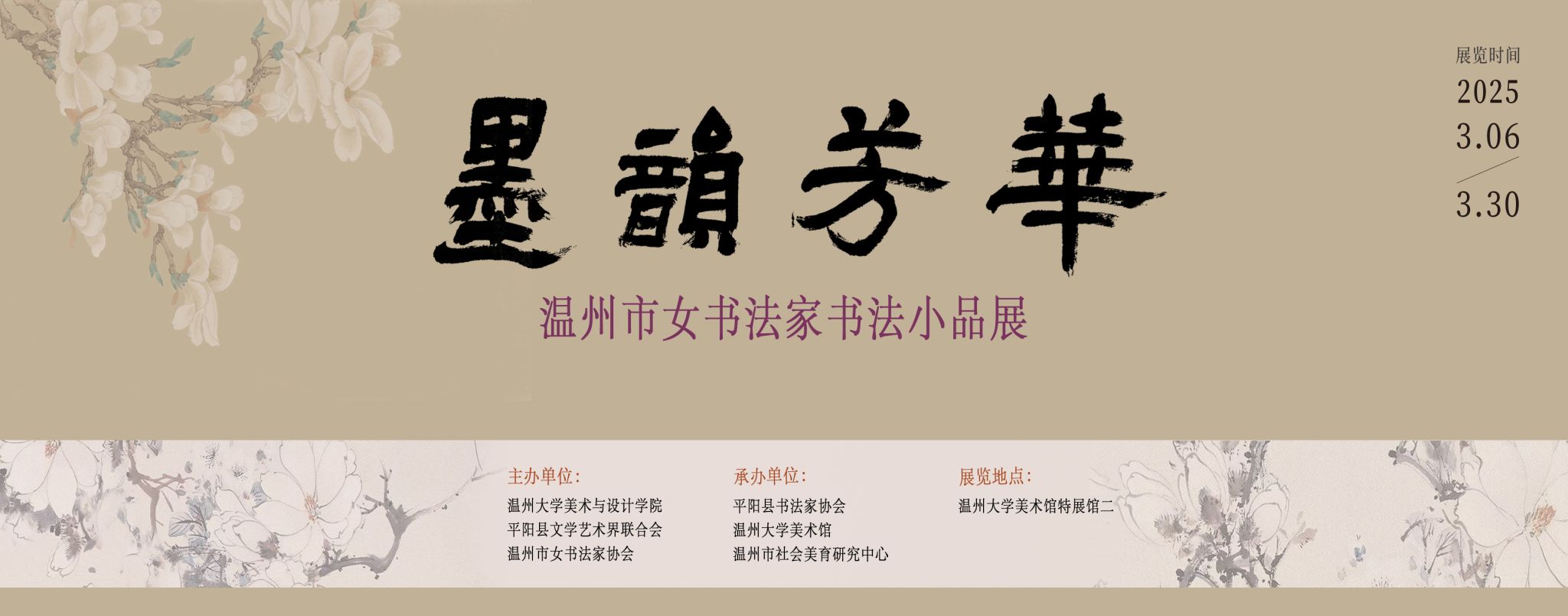 主办单位万象城awc官网登录入口平阳县文学艺术界联合会温州市女书法家协会承办单位平阳县书法家协会万象城awc官网登录入口美术馆温州市社会美育研究中心展览时间2025.03.06 - 2025.03.30展览地点万象城awc官网登录入口美术馆特展馆2(万象城awc官网登录入口北校区)前 言春水初生,墨香盈袖。值此第一百一十五个“三八”国际妇女节来临之际,万象城awc官网登录入口,平阳县文学艺术界联合会,温州市女书法家协会联合举办“墨韵芳华——温州市女书法家书法小品展”。此次展览的书法作品,集温州女子书法之精华,或诗词文赋,或楹联佳句,五体俱全,各臻其美:楷法森严,如昆山片玉,落纸有声;行草灵动,似鸾凤和鸣,婉转婀娜;篆隶古拙,若苍松劲竹,古朴典雅。小品,妙在其小,重在其品。方寸间,可见天地;细微处,蕴含乾坤。展出的书法小品,皆能小中见大,以妙腕雅趣抒写涓涓性灵,于尺方笔墨散发袅袅馀韵。笔走龙蛇间,尽显女性才华风姿,的确值得细细品味。愿此展激励更多女性挥毫泼墨,让笔墨的温度与女性的力量,在满庭芳华中彼此照亮!