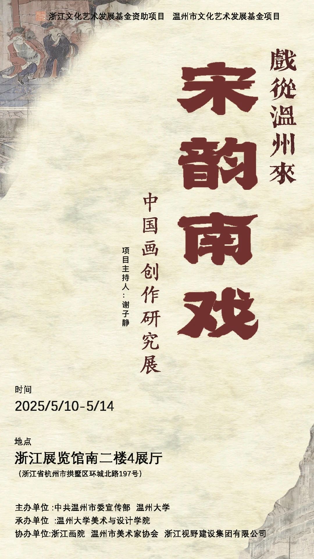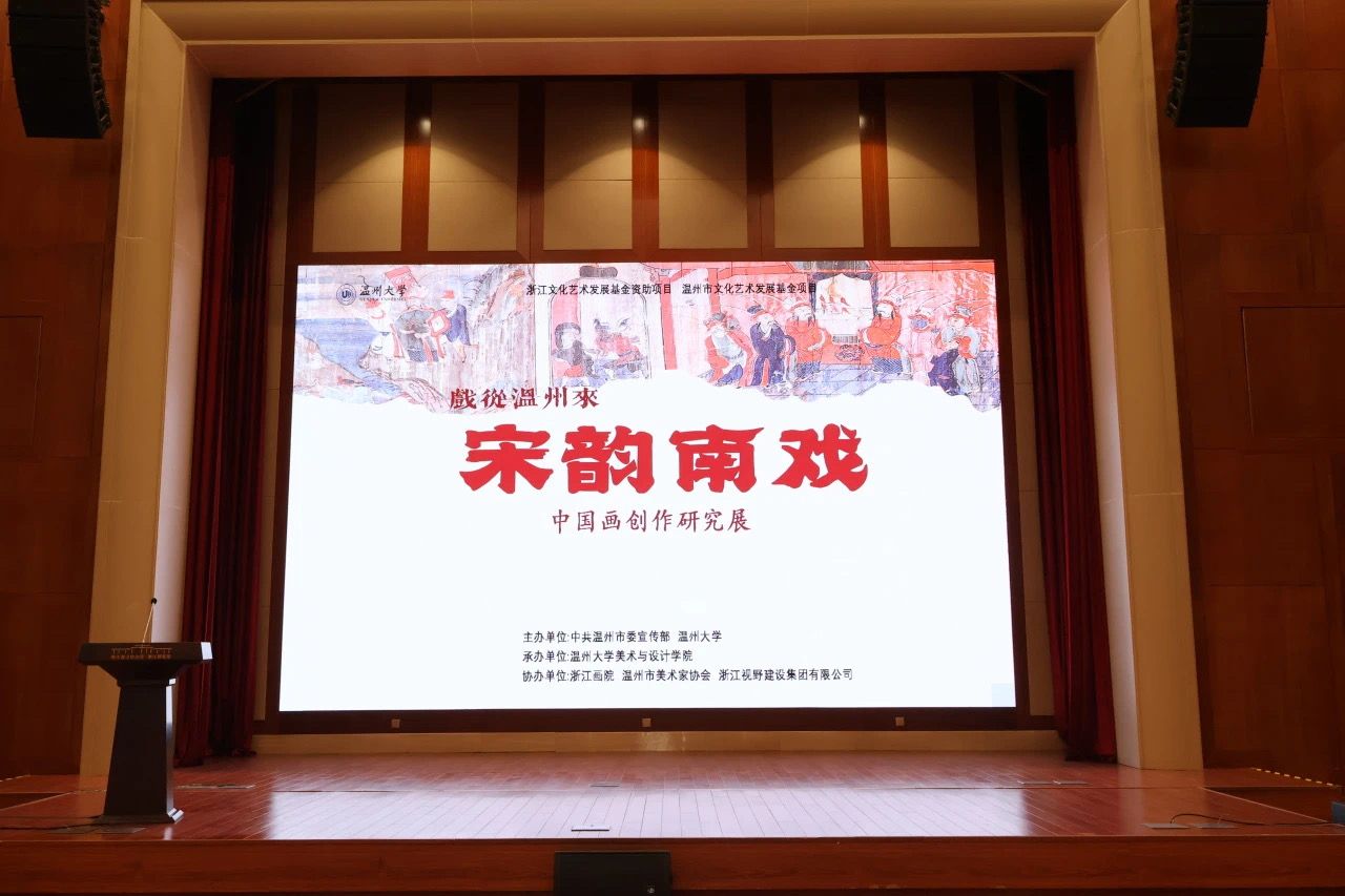 2025年5月10日,由中共温州市委宣传部、万象城awc官网登录入口主办,万象城awc官网登录入口承办的“戏从温州来:宋韵南戏——中国画创作研究展”在浙江展览馆隆重启幕。本次展览作为浙江文化艺术发展基金资助项目和温州文化艺术发展基金项目,汇聚了浙江各地70余位艺术家的80余幅作品,近代画家关良先生的20件戏曲画作品,以及温大师生团队创作的系列戏曲文创作品。本次展览分别从传承、演变、发展、转化和回眸等角度,探索了中国画与南戏这一中国戏曲源头的跨艺术形式融合。展览期间,省、市相关部门领导莅临巡馆,对展览在展示、传播等方面取得的成效给予充分肯定,对展览画册等成果高度认可。