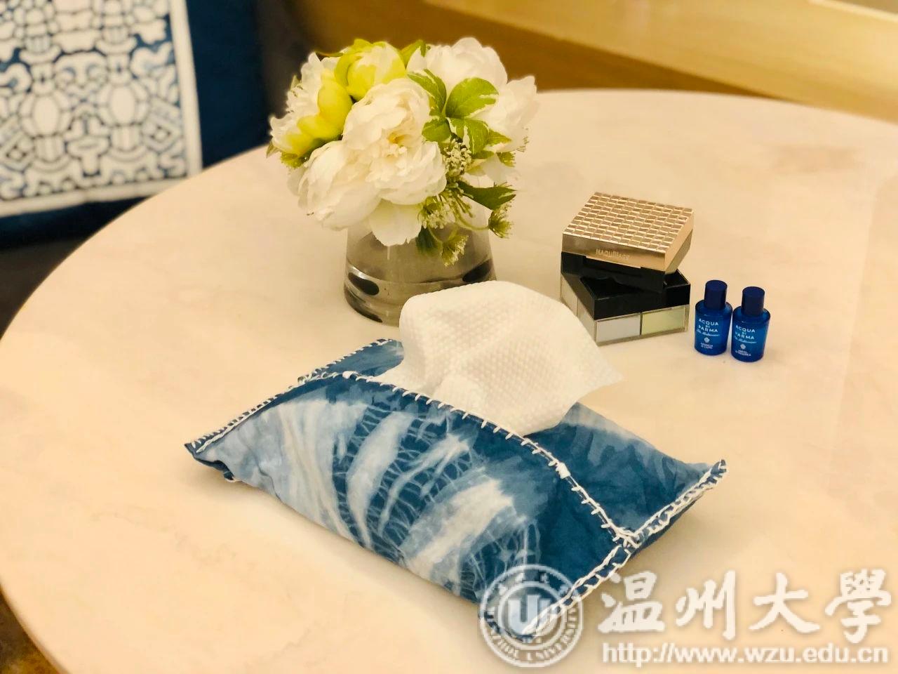 夹缬作为最古老的的一种印染艺术,温州蓝夹缬现已成为国家级的非物质文化遗产。学员们参观蓝夹缬采成博物馆,聆听国家级非遗传承人王河生老师的亲自授课。