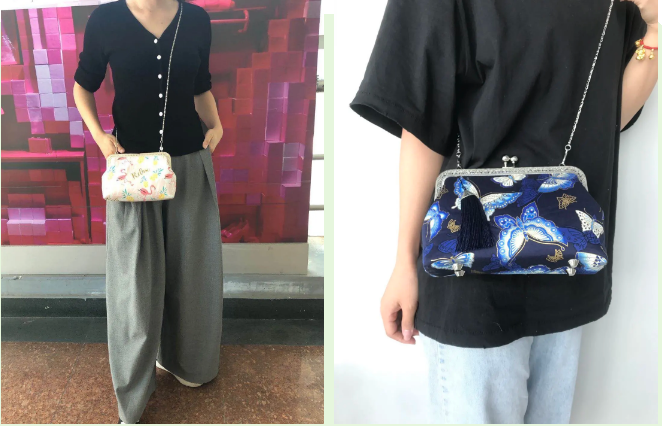 马俊淑老师讲授教堂之窗拼布,是利用折纸法结合斜纹布的伸缩性制作法。立体的效果、靓丽的配色,带来不同的美感;并讲授口金包的历史、种类、制作方法等。