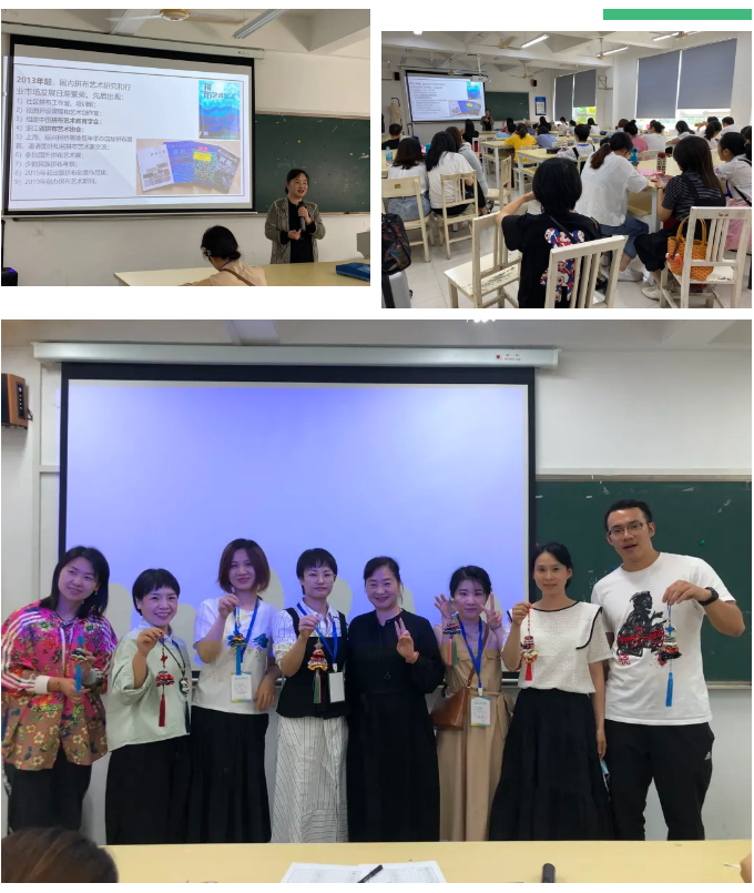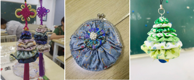 首先,针对中小学生艺术素养的提升,陈明艳教授介绍了布艺设计美术教育的重要性;其次阐述了古今中外拼布艺术概况及其现实意义等,通过各时期拼布收藏品和精美的拼布艺术品图欣赏,展开图文并茂的讲解。下午,陈明艳教授讲授了YOYO拼布创意设计,亲手教学员缝制Y0Y0圣诞树和零钱包制作,学员们愉悦地体验Y0Y0布艺D|Y的快乐!