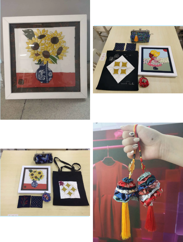 由陈明艳教授负责的《“爱拼”手工布艺设计》培训课,于2020年10月3日顺利开班,学员比计划数增加一半,坐无虚席。 首先,针对中小学生艺术素养的提升,陈明艳教授介绍了布艺设计美术教育的重要性;其次阐述了古今中外拼布艺术概况及其现实意义等,通过各时期拼布收藏品和精美的拼布艺术品图欣赏,展开图文并茂的讲解。下午,陈明艳教授讲授了YOYO拼布创意设计,亲手教学员缝制Y0Y0圣诞树和零钱包制作,学员们愉悦地体验Y0Y0布艺D|Y的快乐! 许丽慧老师讲授刺子绣,并为学员示范操作,学员们根据各自喜好的图案制作了刺子绣杯垫。 马俊淑老师讲授教堂之窗拼布,是利用折纸法结合斜纹布的伸缩性制作法。立体的效果、靓丽的配色,带来不同的美感;并讲授口金包的历史、种类、制作方法等。 最后一天,陈明艳教授将讲授布贴画,是不需针线缝的布艺装饰画制作法,注重花色布的搭配设计,且操作简便、装饰效果佳。 短短的5天培训课,学员们享受手作之乐,收获满满!让我们看看教学现场以及参加培训的老师们“日夜奋战”做出漂亮的布艺作品吧! 老师教学篇 学生作品 师生集体照 本次培训将有助于学员们进一步理解教师提升教学能力的重要意义、学习了新的教学技能与思路。今后,学员们也将把所学知识进一步应用到课堂教学中,为各个学校教学质量提升迈出重要的一步。