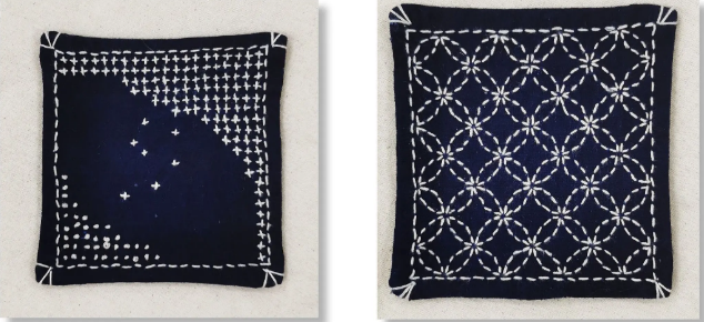 许丽慧老师讲授刺子绣,并为学员示范操作,学员们根据各自喜好的图案制作了刺子绣杯垫。