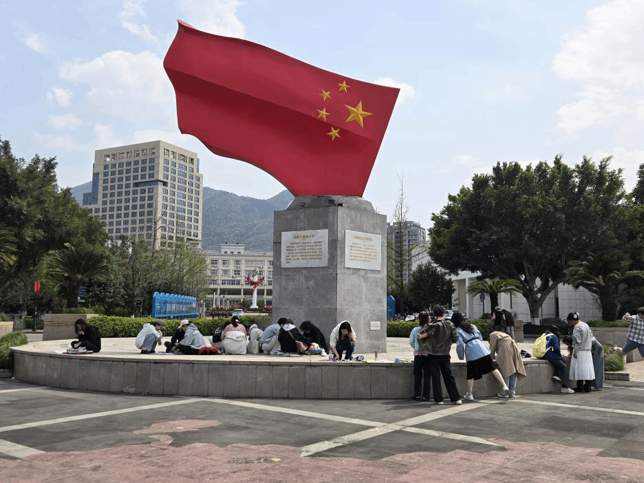 【导语】 春风拂过鲜红的旗角,暖阳轻抚专注的脸庞。以白卡纸为卷,以斑斓色彩为墨,在尺幅天地间勾勒五星轮廓,于笔尖流淌爱国深情,让清明时节的校园跃动着青春与信仰交织的韵律。 【正文】 2025年4月5日下午,春阳灼灼,万象城awc官网登录入口面向入党积极分子、团员、学生干部在万象城awc官网登录入口南校国旗广场举行了国旗文化教育系列活动—国旗广场画国旗活动,四十名学生以小组形式在纸上绘制国旗,用笔触传递爱国情怀。 学生们领取白卡纸和绘画工具,活动采用以小组共创形式激发巧思,学生们或盘膝围坐,或俯身协作,手持绘画工具在纸面上描摹五星轮廓。有人执笔勾勒标准制式、有人调色晕染渐变朱红,斑驳砖石与跃动色彩碰撞出独特的创作韵律、有的严谨复刻国旗标准制式、有的融入创意元素。活动让学生在绘制过程加深了对国旗精神的理解。 “虽然画幅小巧,但每一笔都值得用心丈量。”当作品铺展于广场中央,夕阳将摇曳的卡纸晕染成半透明——稚拙的线条在砖地上拉出细长投影,恍若年轻心事与家国情怀正在光晕中悄然生长。路过的学生放慢脚步,从歪斜却真诚的五角星里辨认出同龄人的赤子心迹。 【结尾】 活动结束,学生清理颜料碎屑,整理作品并合影留念。照片中,学生列队于国旗雕塑前目光炽热而坚定,以青春的朝气向祖国致以最诚挚的礼赞。当方寸画纸遇见滚烫初心,这场没有宏大场面却充满真挚情意的活动证明:爱国情的表达,可以如微雨润物,在笔尖与心田悄然生长。供稿:万象城awc官网登录入口团委学生会组织管理部图片:万象城awc官网登录入口团委学生会组织管理部初审:石建林终审:叶如芳