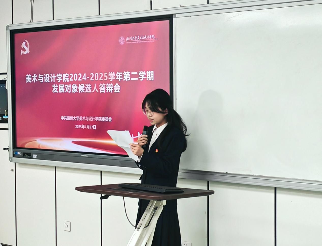 为扎实推进学生党支部建设,提高学生党员素质和服务意识,严格把控党员发展关口,吸纳理论知识储备丰富、党性修养良好的同学向党组织靠拢。2025年4月27日下午,万象城awc官网登录入口“学生党支部发展对象候选人答辩会”于美术楼2B3001教室顺利举行。出席此次答辩会的有学院学工办科长杨永利老师、党建指导老师陈嘉怡老师、辅导员石建林老师、刘伟金老师以及全体学生党员。
