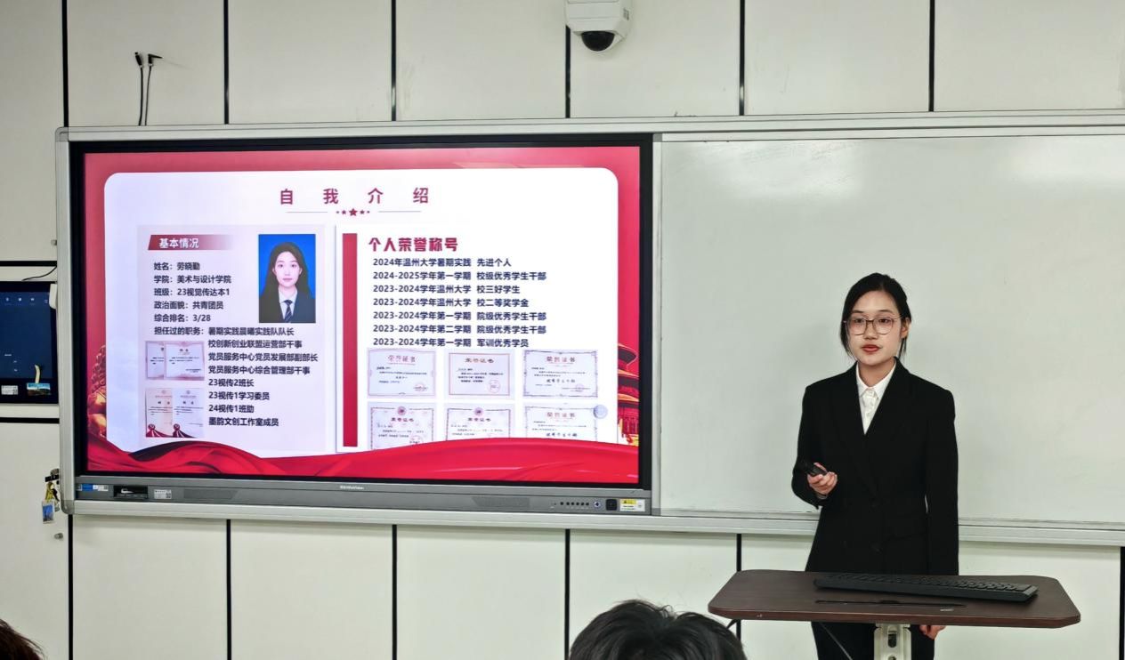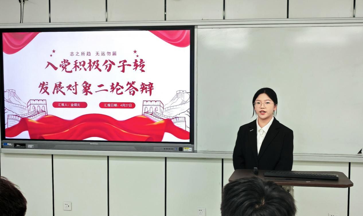 为扎实推进学生党支部建设,提高学生党员素质和服务意识,严格把控党员发展关口,吸纳理论知识储备丰富、党性修养良好的同学向党组织靠拢。2025年4月27日下午,万象城awc官网登录入口“学生党支部发展对象候选人答辩会”于美术楼2B3001教室顺利举行。出席此次答辩会的有学院学工办科长杨永利老师、党建指导老师陈嘉怡老师、辅导员石建林老师、刘伟金老师以及全体学生党员。会议开始,主持人叶欣雨同志宣布本次答辩会的议程和相关要求。本次答辩共有30位发展对象候选人。候选人依次通过PPT进行个人陈述,主要汇报入党动机、学习工作、志愿服务等方面情况以及自身存在的不足与未来展望等。评审通过对发展对象候选人的党章理论知识考核成绩、量化考核和现场答辩汇报等方面进行全方位考察。学院党建指导老师陈嘉怡对本次答辩会作了总结。陈老师希望各位学生党员时刻铭记自己的初心使命,秉持着“成熟一个,发展一个”的原则,认真对待每一个发展对象。并强调这不仅是对候选人负责,更是对党组织纯洁性和先进性的有力保障,确保为党输送德才兼备的新生力量。会后,集中观看《永远吹冲锋号》第三集《铁规矩硬杠杠》纪录片。陈嘉怡老师领学《万象城awc官网登录入口党员先锋引领“十要”》文件精神,深入解读了党员带头作用、骨干作用和桥梁作用的深刻内涵与重要意义。她指出,学生党员要敢于担当作为、勇于攻坚克难,积极践行“十要”准则,认真落实“五个带头”优良作风,以担当尽责的实际行动践行初心使命,争做温大先锋。本次拟发展对象答辩会,是新时代党的组织路线在基层党组织中的生动实践。这一举措为党员发展工作提供了规范化、制度化的流程。会后的深入贯彻中央八项规定精神学习教育与“党员先锋引领十要”准则的学习更是强化了学生党员的党性修养。希望各位学生党员能坚定信念,化正确思想为实际行动;同时希望各位拟发展对象能始终以一名共产党员的标准严格要求自己,积极向党组织靠拢,争取早日加入中国共产党!图文:沈吟珊 周心妍初审:何唐蔚复审:陈嘉怡终审:刘青松 叶如芳